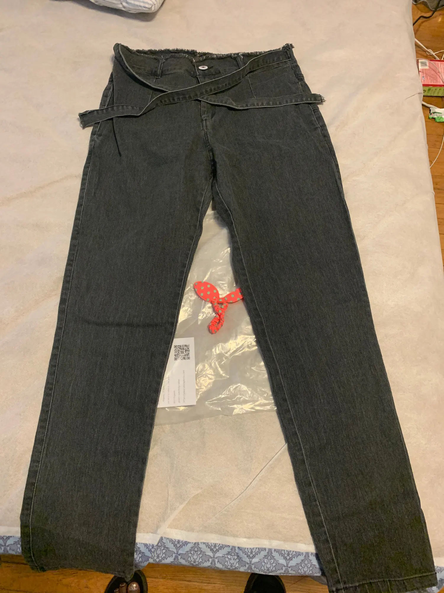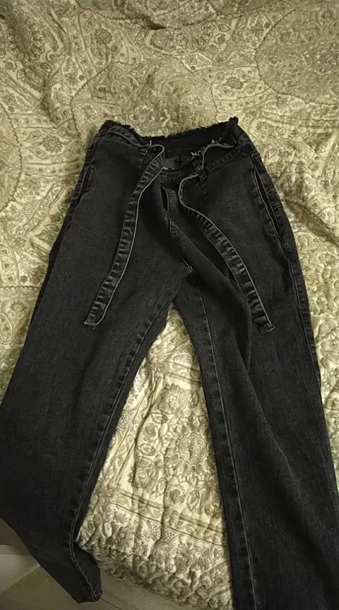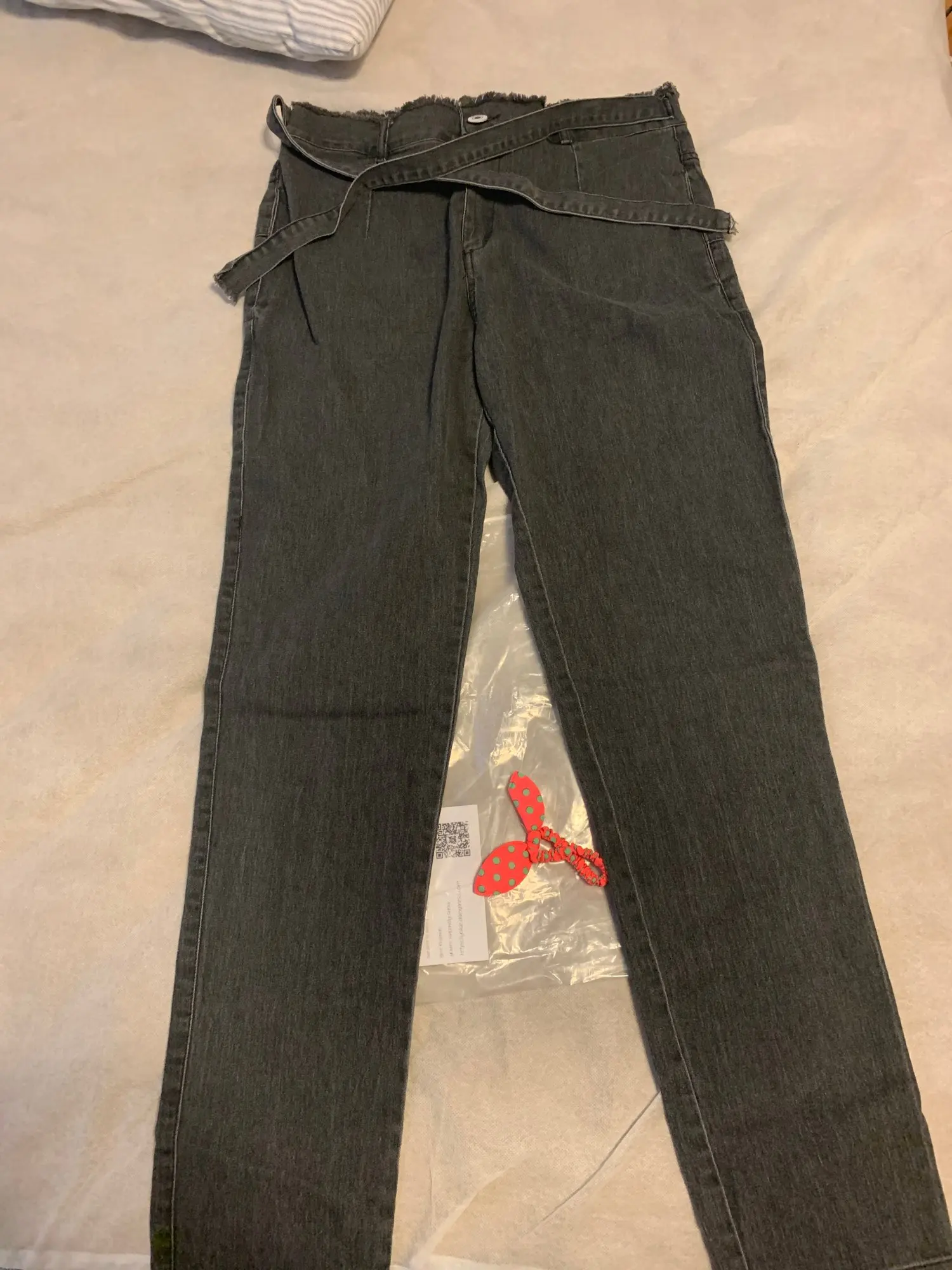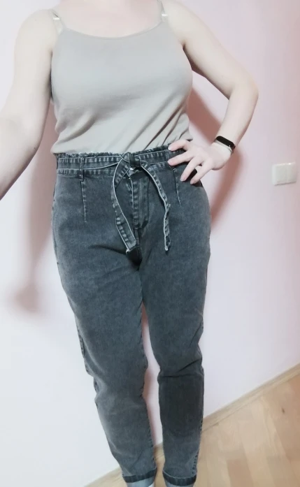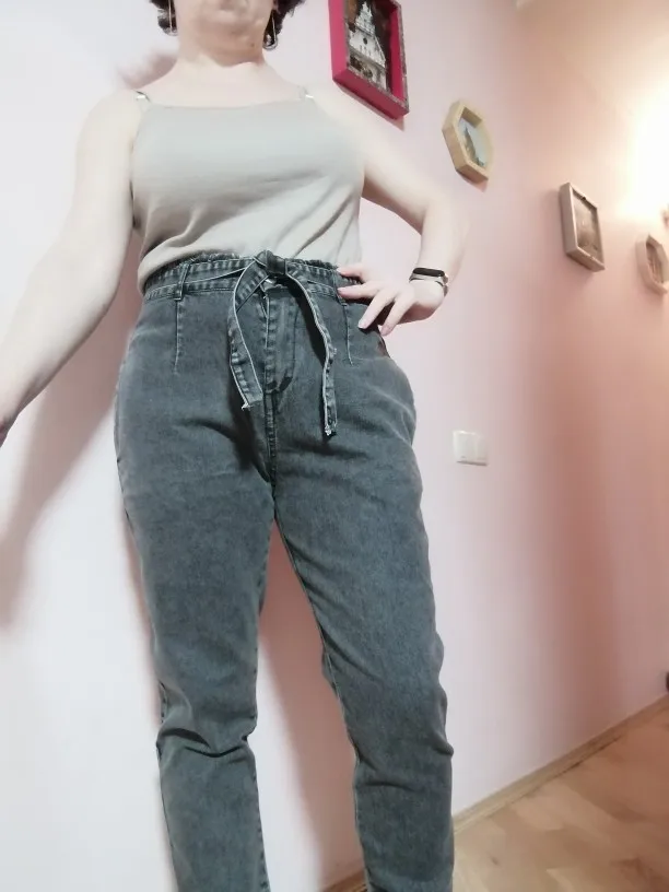 Заказ пришел быстро,джинс не плотный,а скорее тонкий,подойдет под осень-весну.Сами джинсы в общем-то сидят не плохо,но нужно брать на размер меньше своего.У меня М,бедра 100,талия 71см,но я бы взяла S,т.к. люблю больше скинни.Но в целом,неплохо.Оправдаем их милым бантиком в виде ремешка)