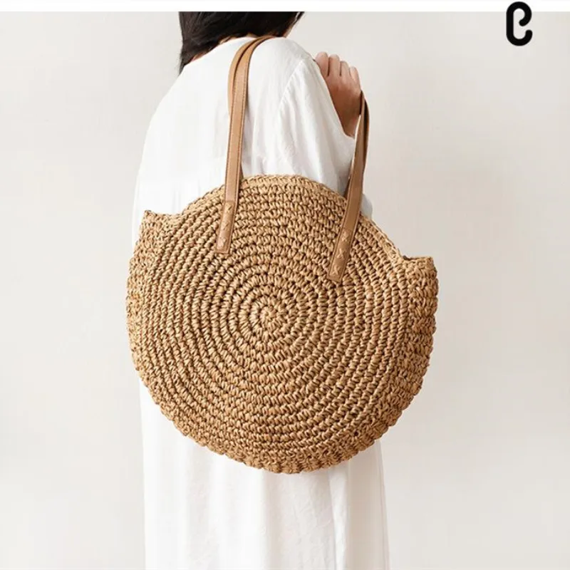 Винтажная соломенная сумка, круглые сумки из ротанга, летние тканые сумки ручной работы, Женская круглая Наплечная Сумка, богемные женские дорожные сумки