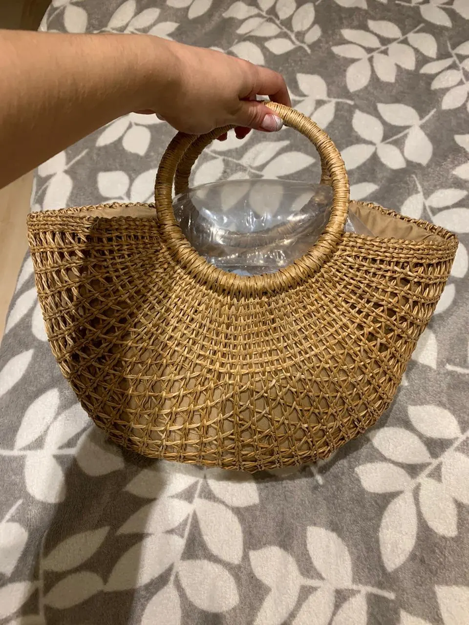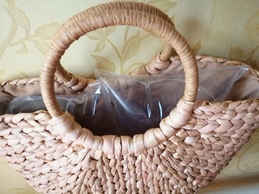 отличная сумочка. сделано неплохо (косячок только на подкладке снаружи -неаккуратно прошито. натуральный ротанг, как и полагается местами разного цвета. была надежно упакована. внутри пакеты с воздухом. я очень довольна. то что я хотела!!