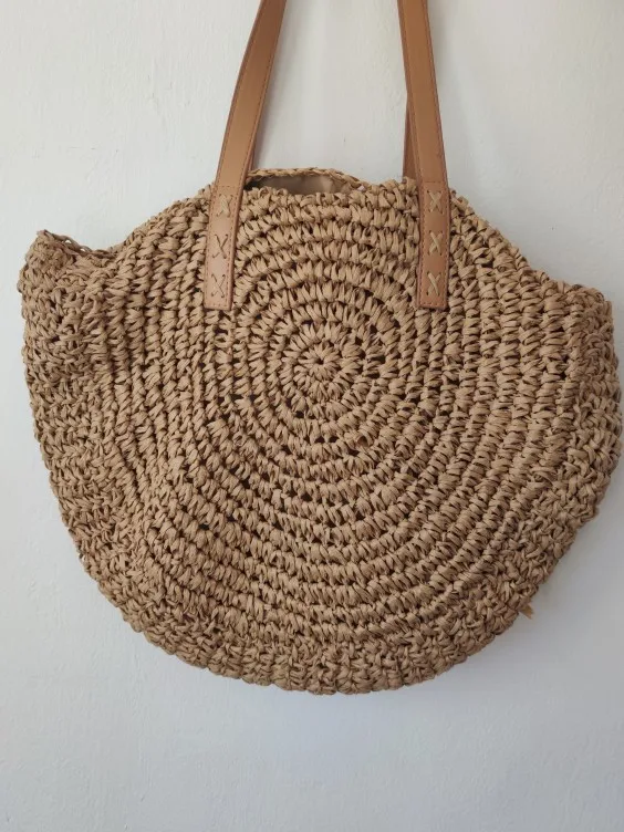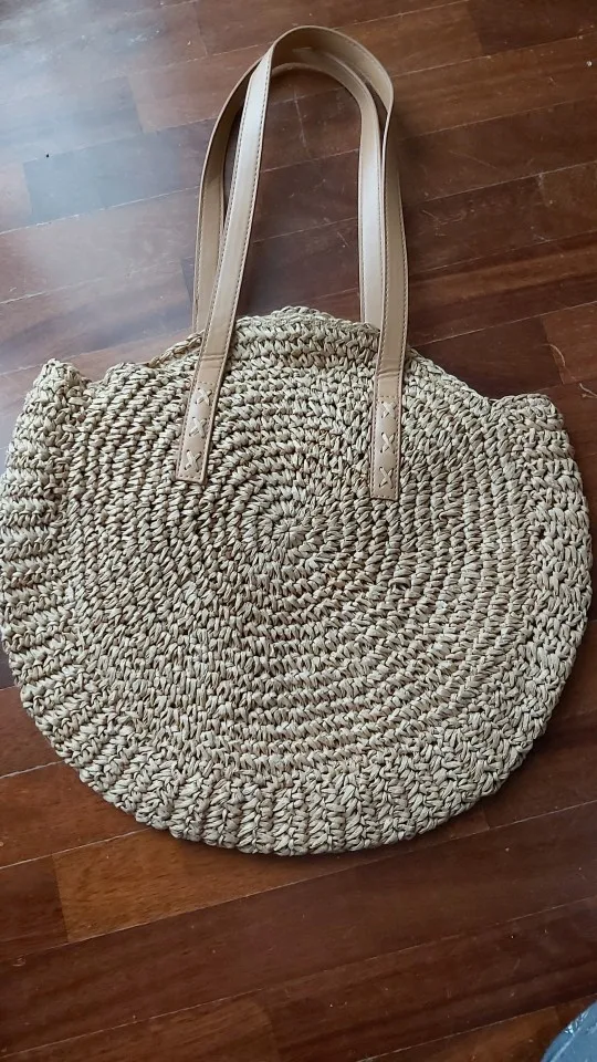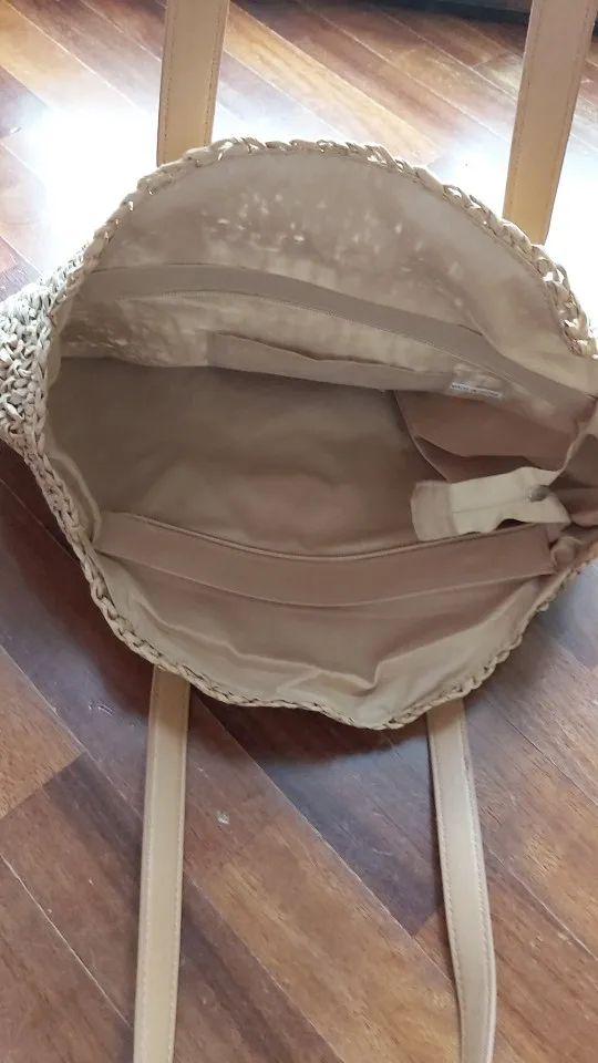 Пришло вместе все 3 сумки, как заказывала. Сумка из соломы. Сделана аккуратно, хорошо, все как на картинке. Чтоб не помялась, внутри лежит надувной пакет, так и храню. Размер средний. Внутри обтянута приятной тканью. Есть отделение для телефона. При необходимости можно внутреннюю ткань делать мешком и утягивать, а можно аккуратно сложить по стенкам . Ничего не мешает. Мне нравиться. Спасибо. Если вы хотите такую сумку, берите, не сомневайтесь.