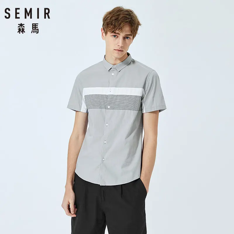 Мужская рубашка с контрастной строчкой SEMIR, повседневная хлопковая рубашка с отложным воротником, лето 2020