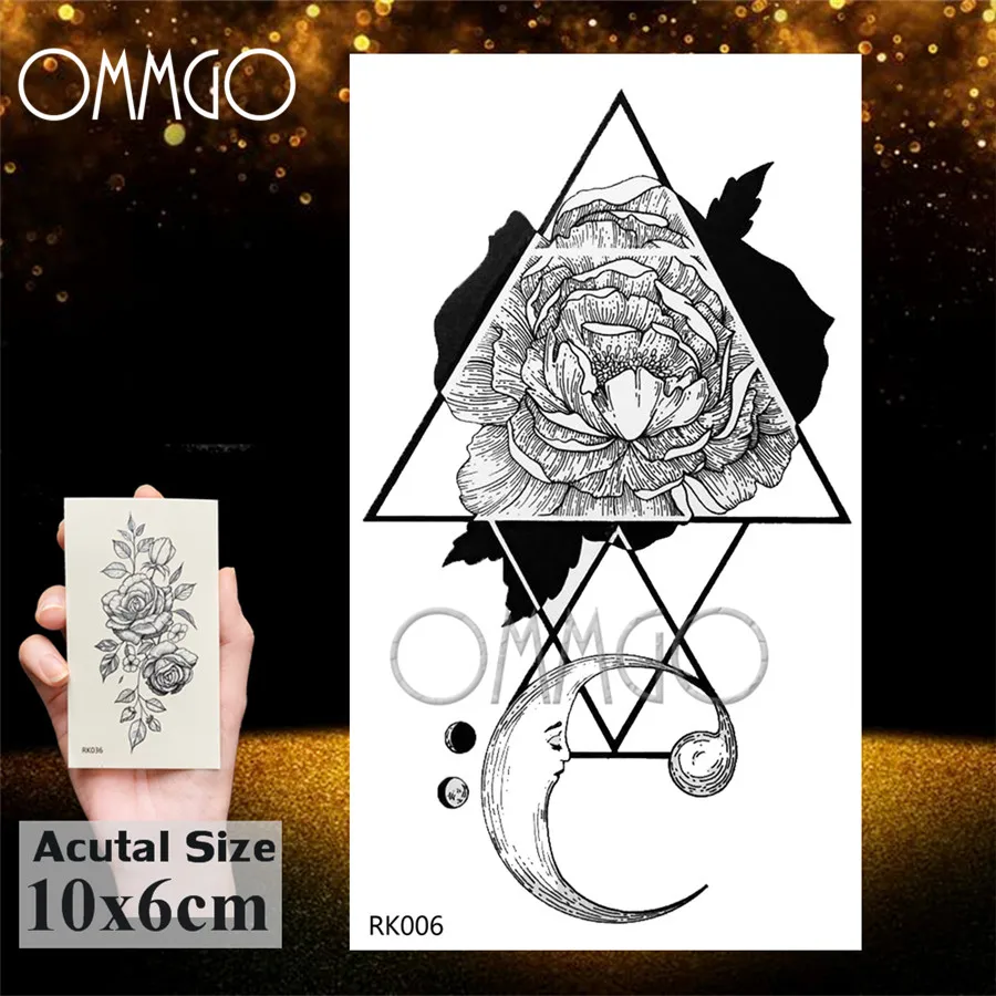 Черная Реалистичная Геометрическая Роза, треугольник, Временные татуировки, наклейка, луна, тату, боди-арт, слива, цветение, фальшивые татуировки драгоценность