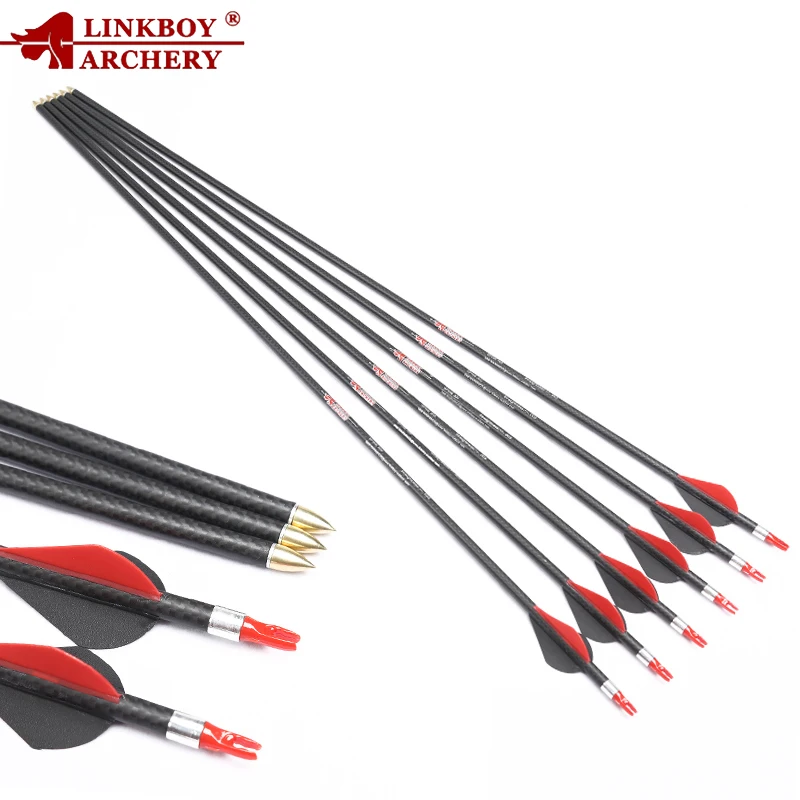 6/12 шт. Linkboy карбоновые стрелы для стрельбы из лука Sp300-600 3k плетение 2-дюймовые пластиковые лопасти 75гр стрелка для составного лука охота стрельба