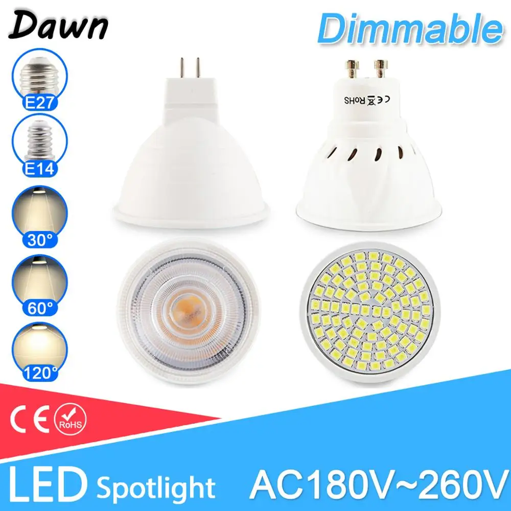 Диммируемая Светодиодная лампа MR16 E27 GU10 E14 MR11, светодиодный прожсветильник 6 Вт 7 Вт 8 Вт 220 В переменного тока, 12 В, точесветодиодный светодиодная лампа, лампа, холодный теплый белый свет