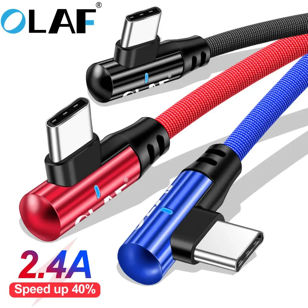 OLAF 2.4A USB Type C 90 градусов USB C кабель для Samsung Galaxy S10 S9 Plus Xiaomi Mi 8 6 9 LG USB C кабель для быстрой зарядки и передачи данных