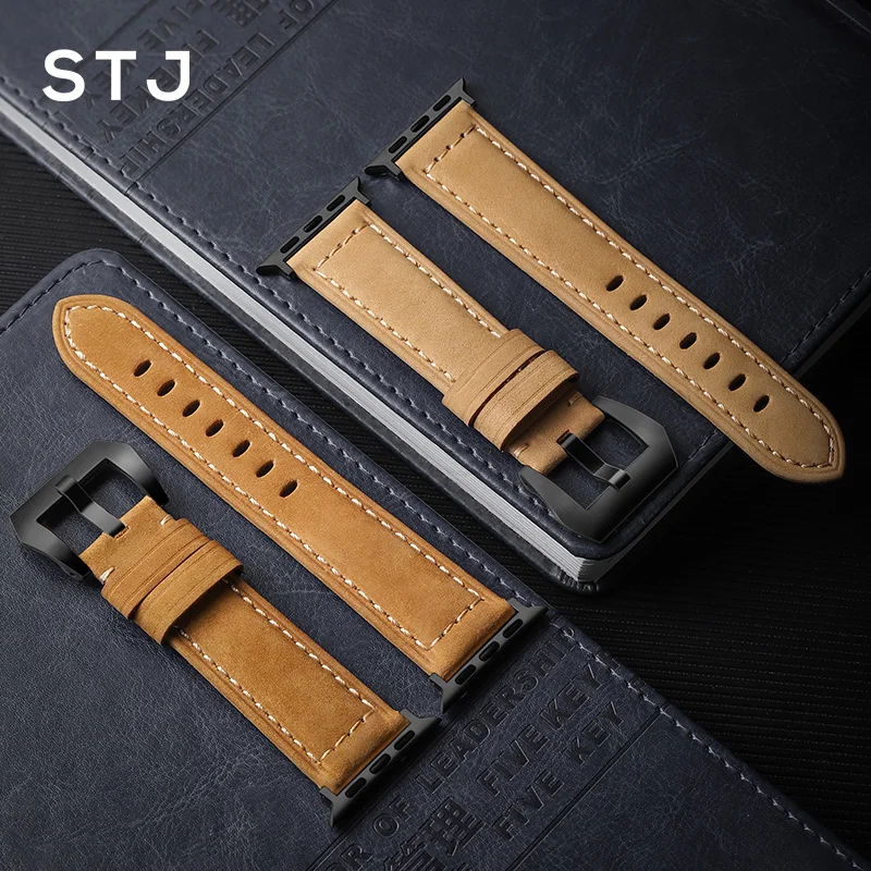Ремешок для часов STJ, из воловьей кожи, для Apple Watch 42 мм 38 мм и Apple Watch Series 4 3 2 1, ремешок для iWatch 44 мм 40 мм