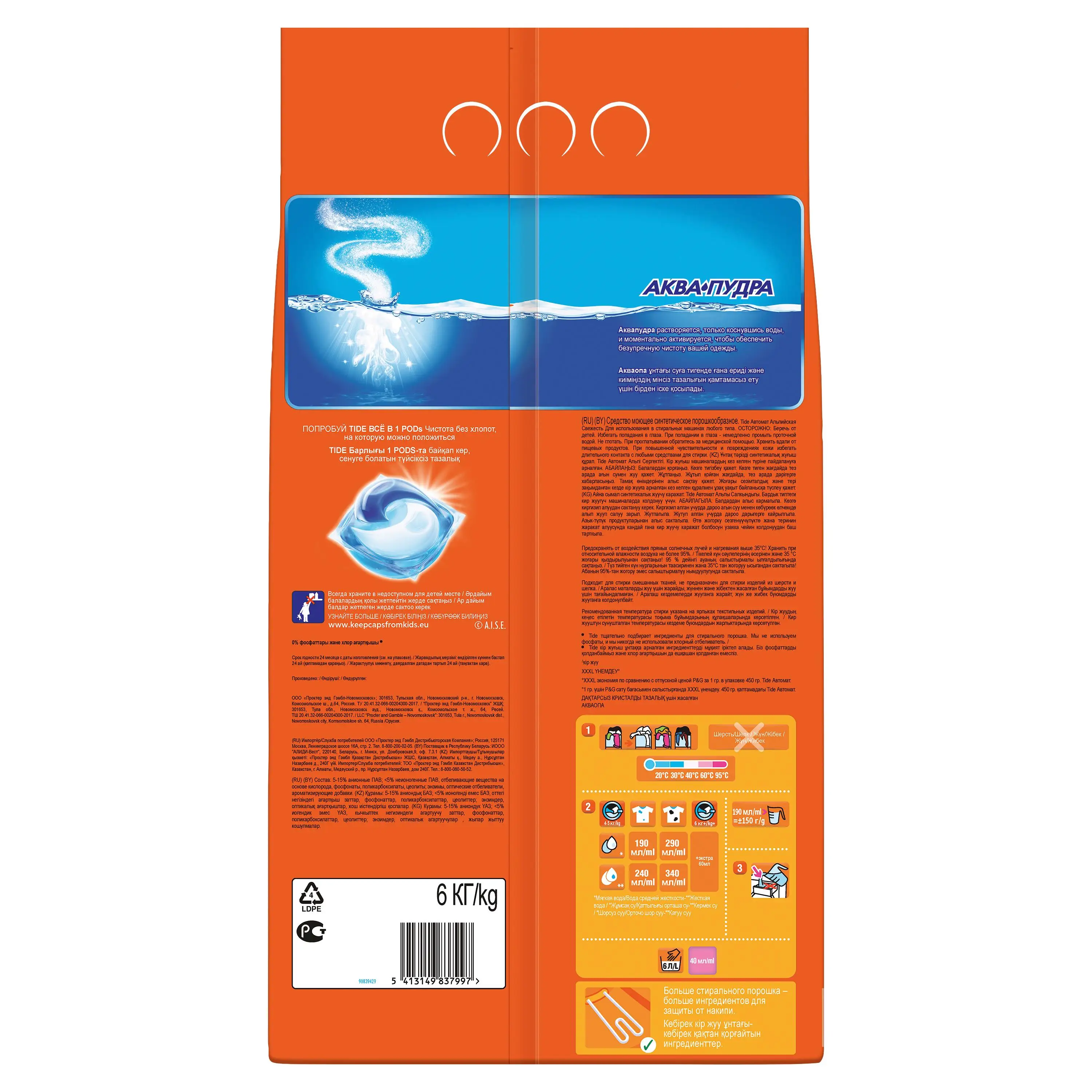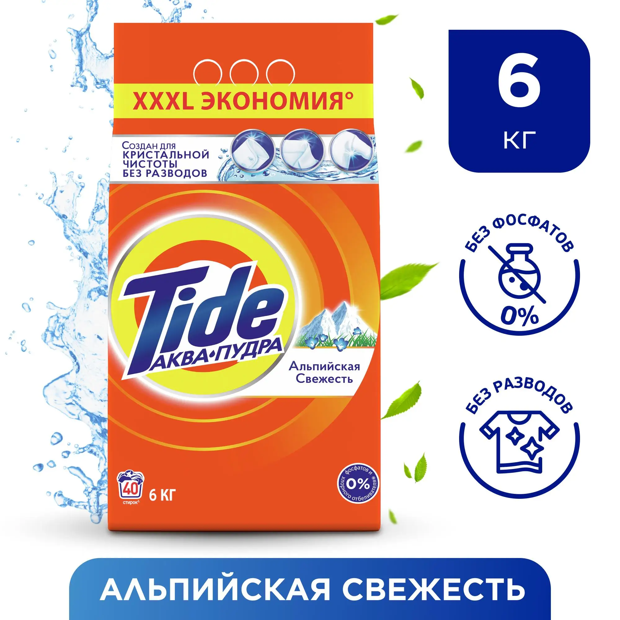 Моющее средство для стирки, автоматическая альпийская свежесть, 40 стирок, 6 кг.