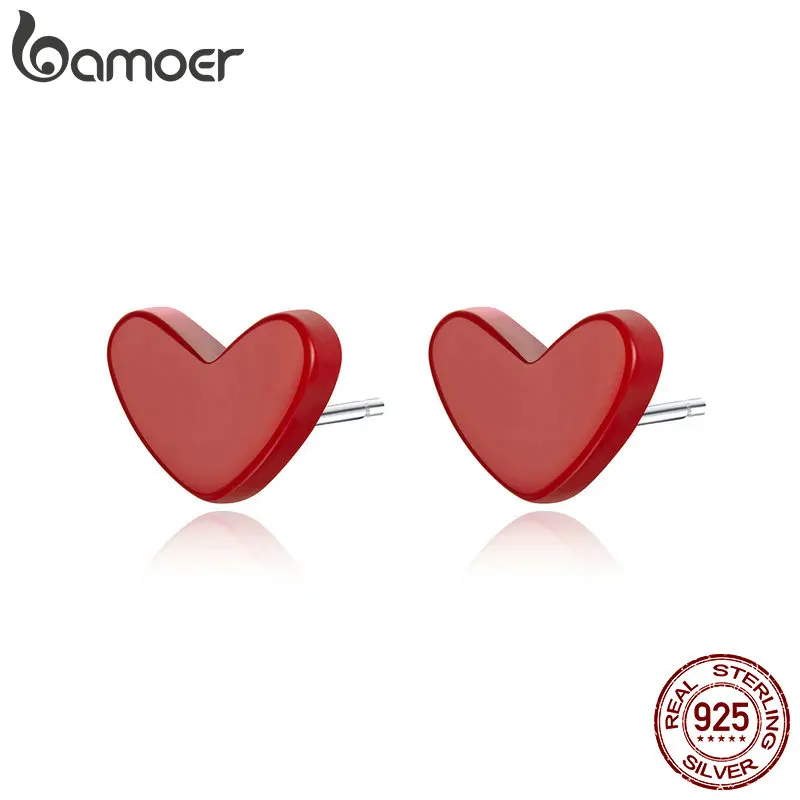 Женские серьги-гвоздики BAMOER, винтажные серьги-гвоздики с красным камнем и бирюзой из стерлингового серебра 925 пробы, корейские ювелирные изделия SCE595