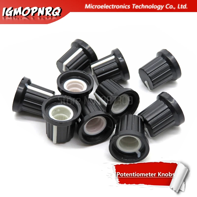 10 шт. AD2 6 мм Диаметр отверстия вала пластик с резьбой рифленый потенциометр ручки крышки wh148