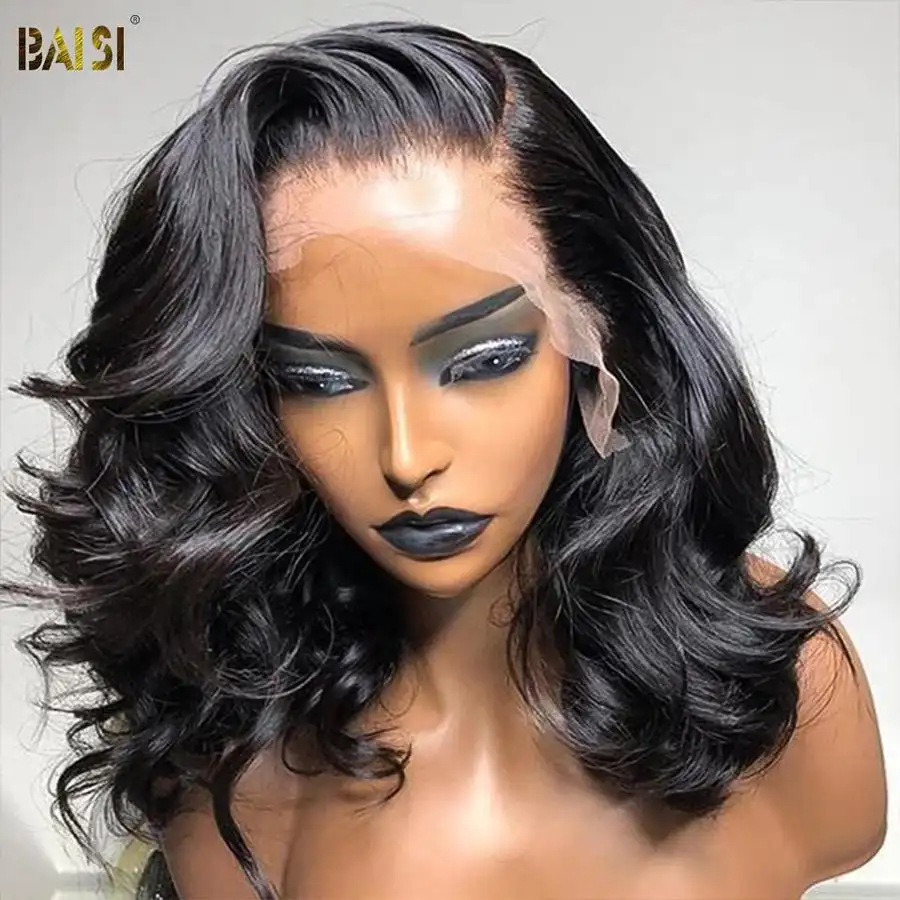 BAISI волосы бразильские волосы свободная глубокая волна 13x6 боб парики кружева спереди человеческие волосы парики 150% Плотность