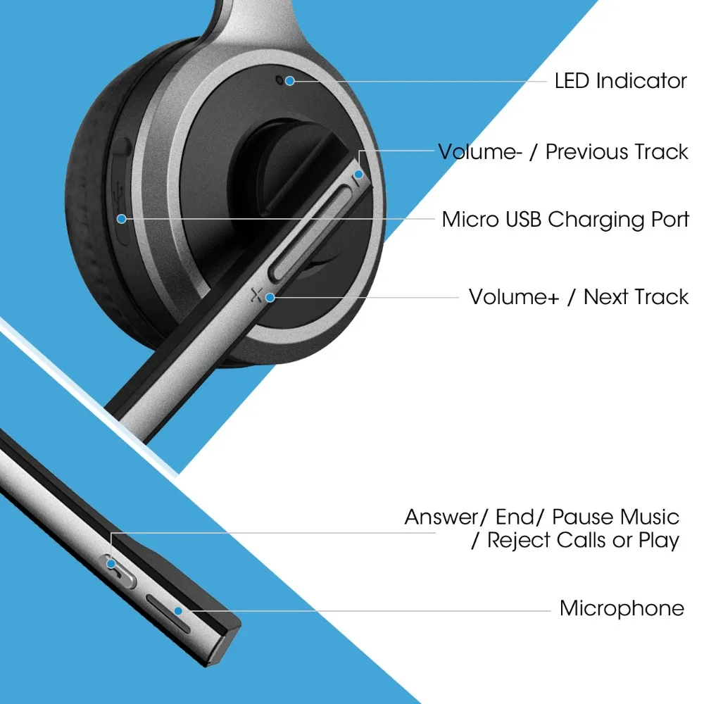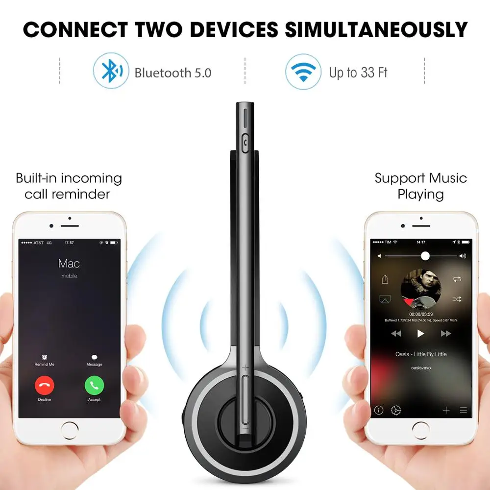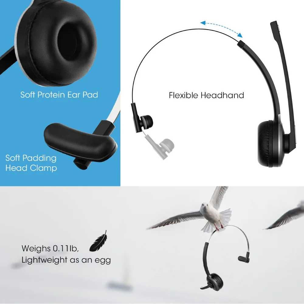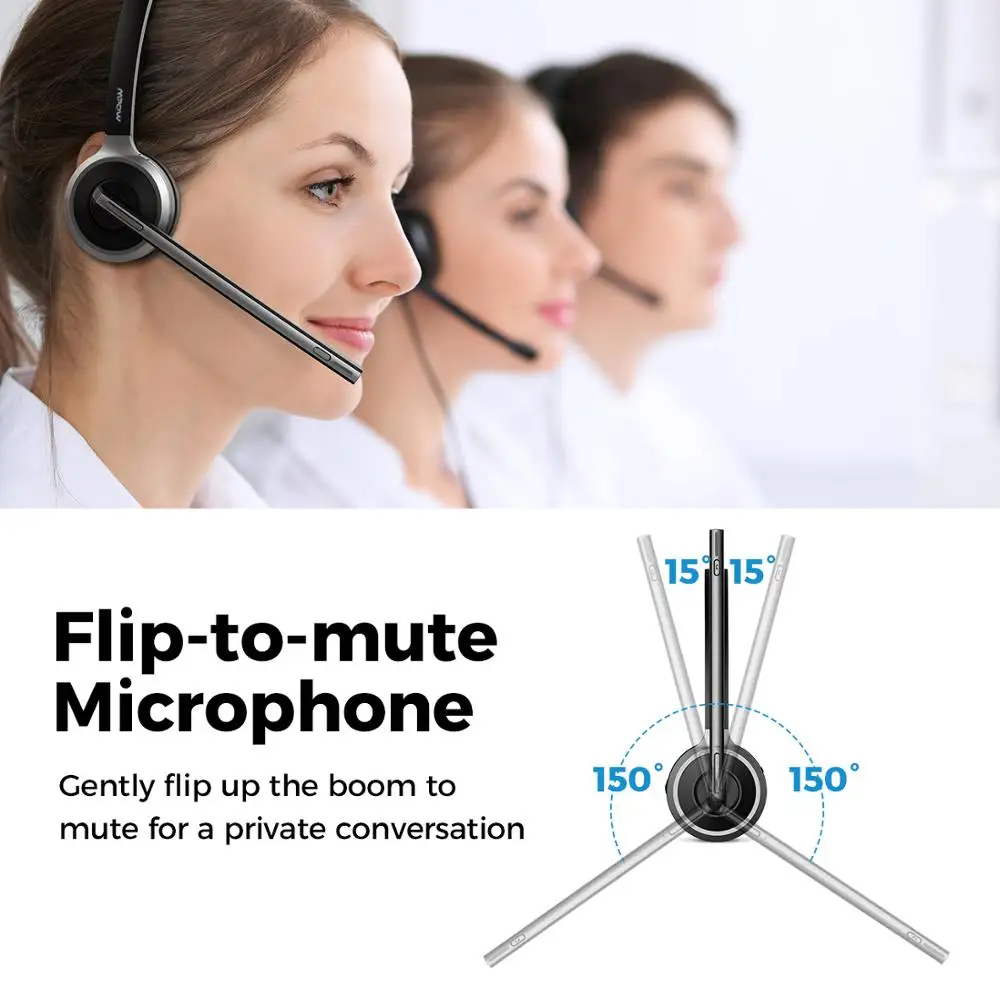 Улучшенная гарнитура Mpow M5, Bluetooth 5,0, беспроводные наушники с 18 часами разговора и шумоподавлением, микрофон для колл-центра, ПК-телефона