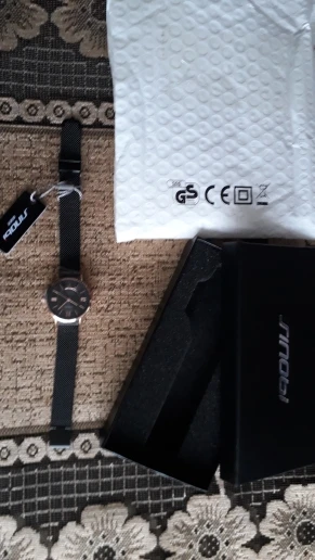 Часы пришли в фирменной коробке, сверху циферблата наклеена плёнка. Беру уже вторые часы этой марки. С первыми всё отлично, просто по цвету они больше подходят к светлой одежде. Первый продукт этой марки я купила 3 года назад, стоили они где-то 600 рублей. За три года практически постоянного ношения стекло без царапин, браслет из нержавейки не потускнел. Поэтому я ещё раз вернулась к этому продавцу. Единственное, что меня огорчило: на задней крышке логотип сделан не в виде гравировки (так на моих первых часах), а приклеен как наклейка. Всё-таки стоимость у них на порядок выше и хотелось, чтобы оформление было ничуть не хуже предыдущих.