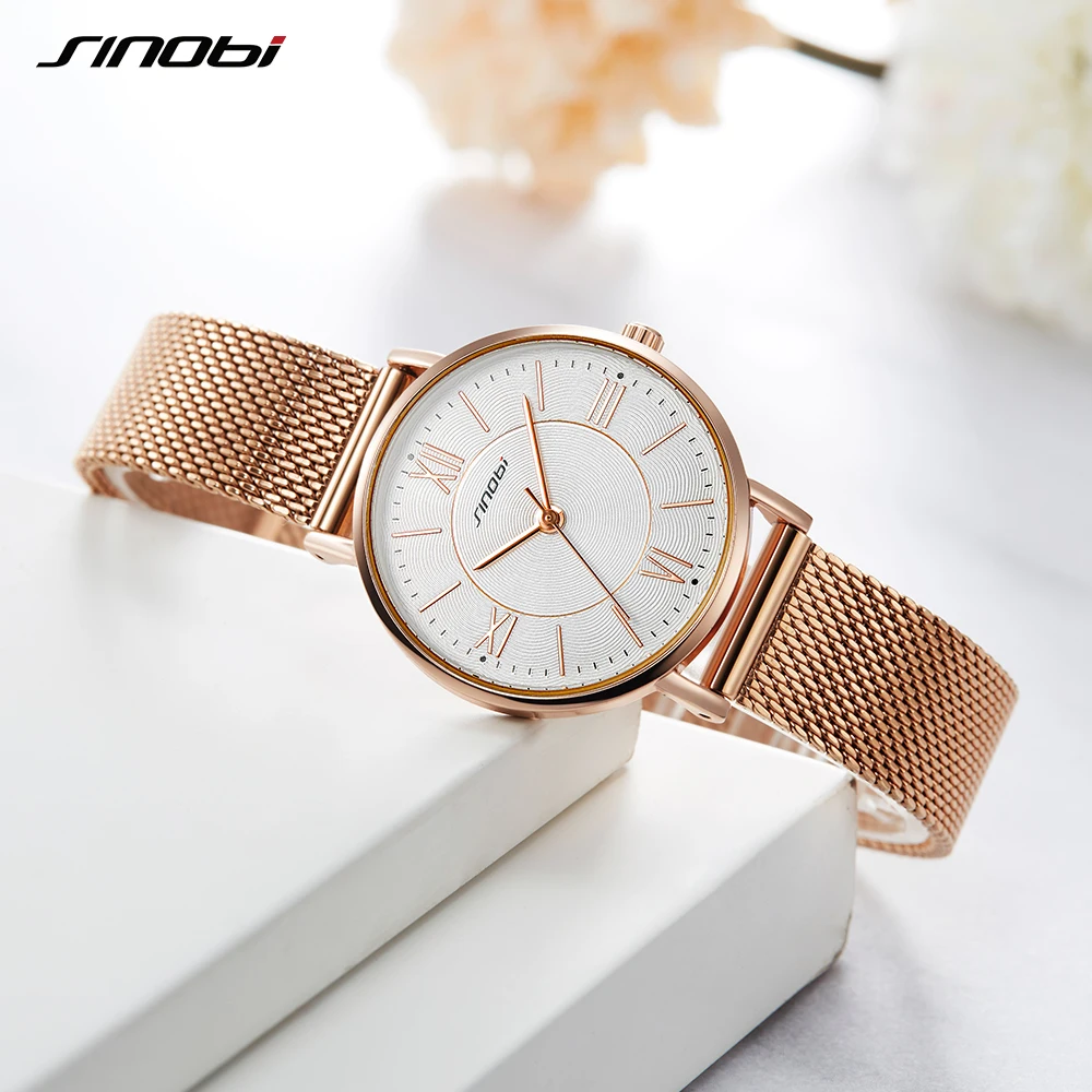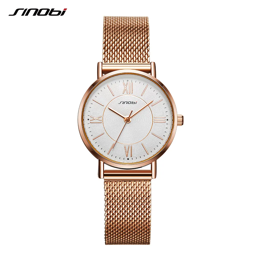 Часы наручные Sinobi женские, Элегантные классические водонепроницаемые золотистые с браслетом из нержавеющей стали