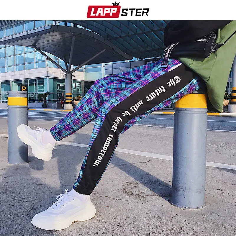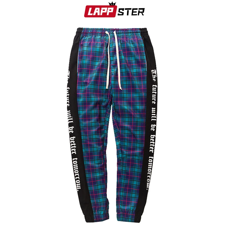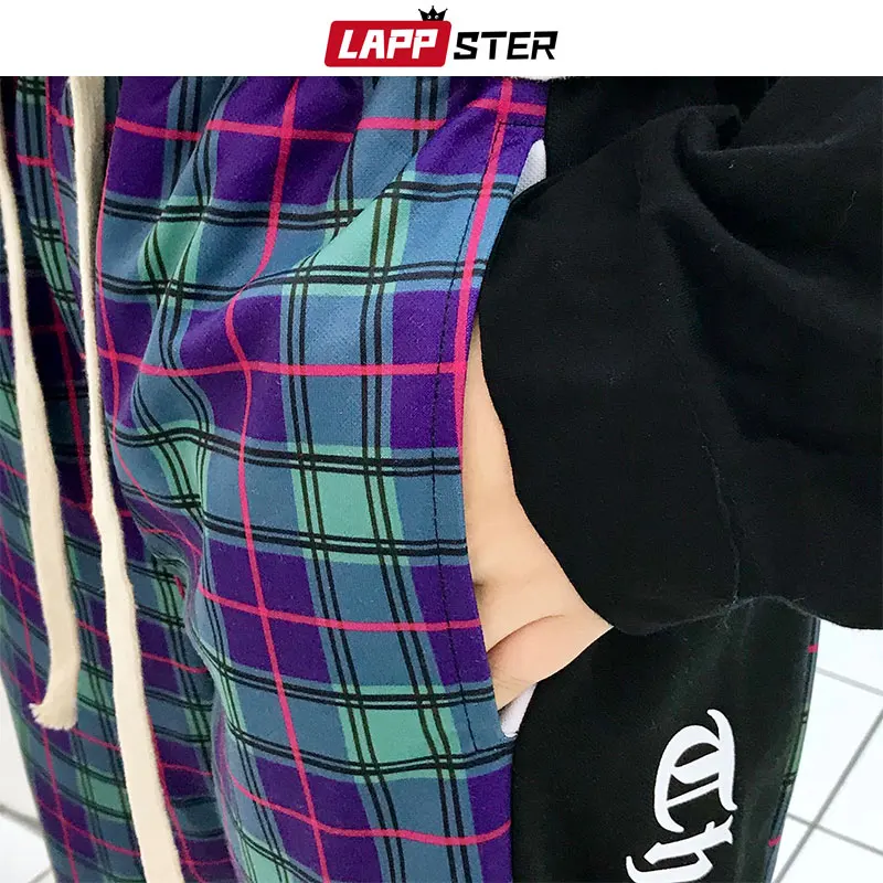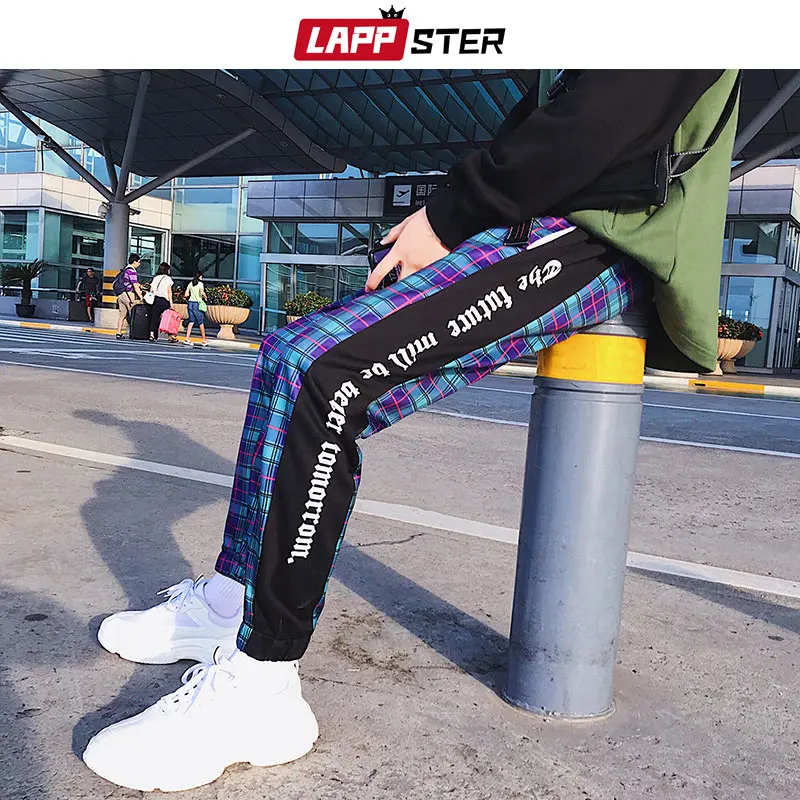 Брюки LAPPSTER мужские в клетку, уличная одежда, джоггеры, мужские синие спортивные штаны в стиле пэчворк, хлопковые тренировочные штаны до щиколотки в стиле хип-хоп, 2022