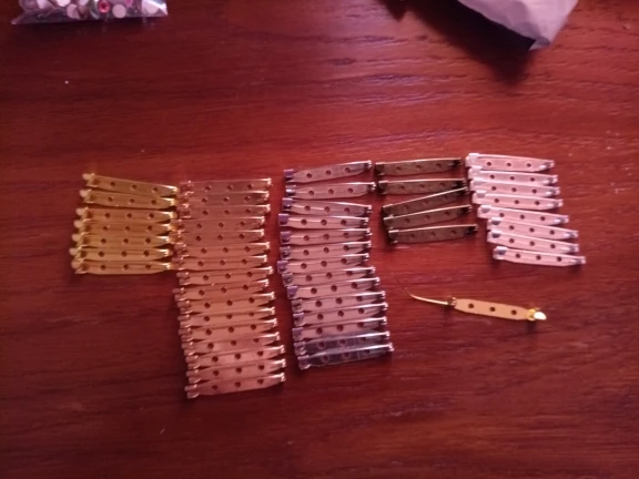булавки вполне соответствют фото и описанию продавца.качество хорошее, доставка в пределах заявленного (около 6 недель до Тюмени) пришли в объединенном пакете вместе с другими заказами. Рекомендую