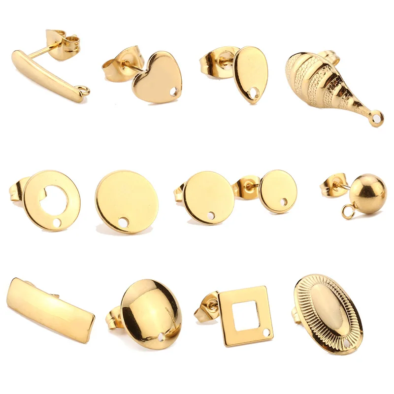 Золотые серьги из нержавеющей стали 316L с 8 мм10 мм12 мм круглой плоской прокладкой основание Установка Отверстие гипоаллергенные посты
