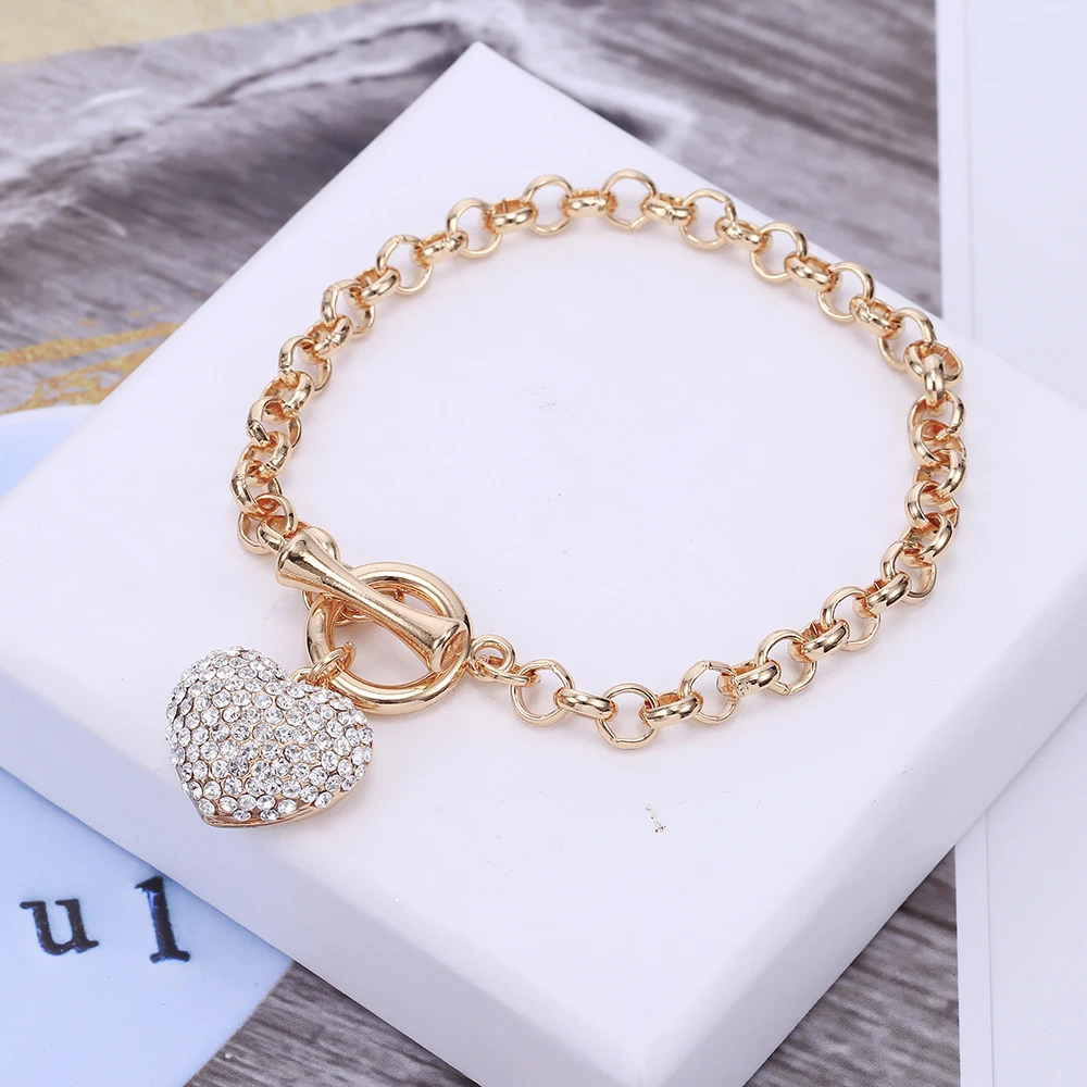 Модные браслет с подвесками в виде сердца со стразами для женщин, аксессуары 2020, золотой браслет-цепочка, роскошное ювелирное изделие, подарок для жены