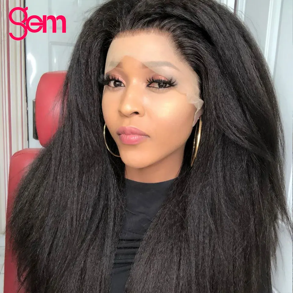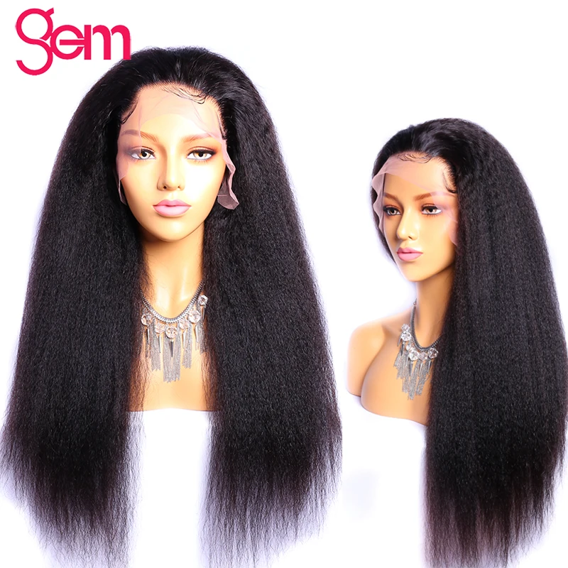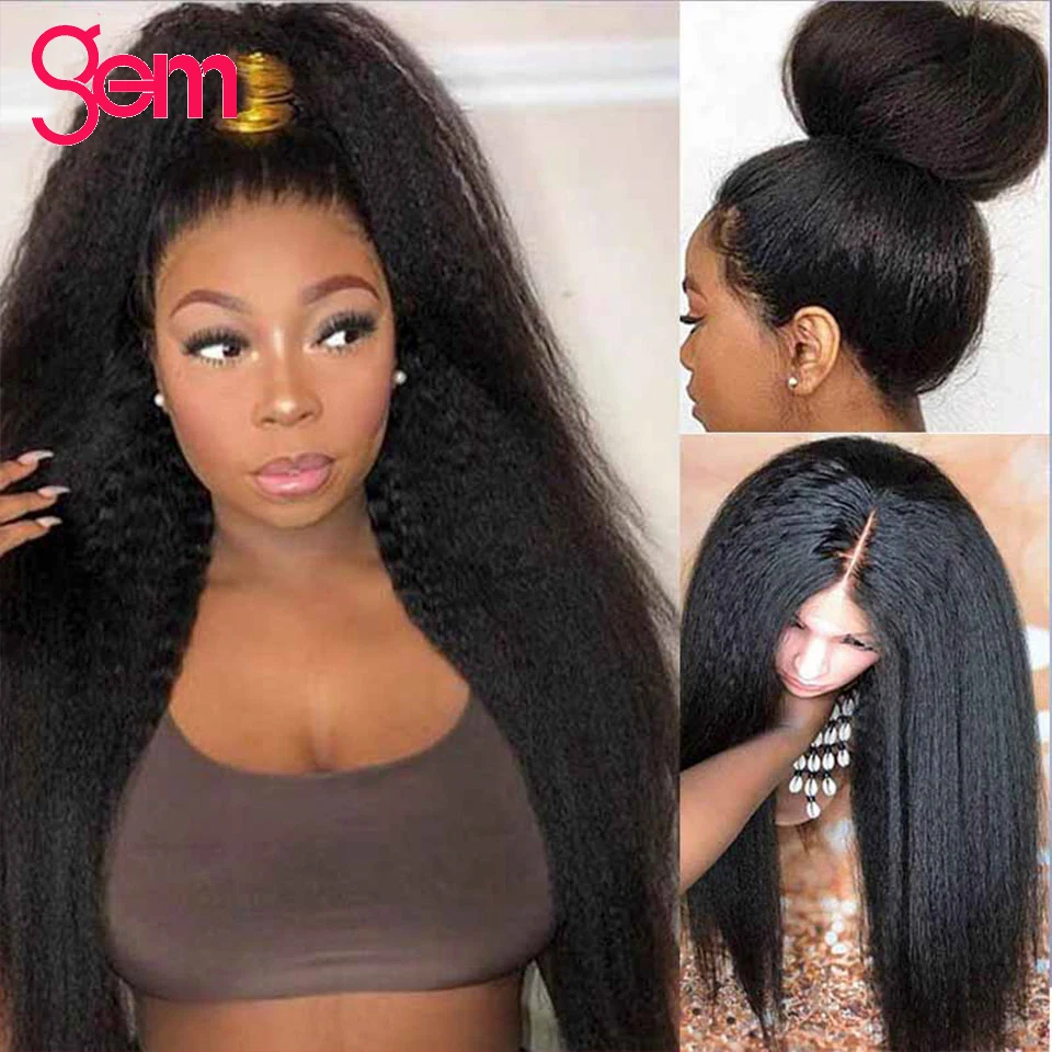 Wig ColorNatural Black Kinky Straight Lace Closure Front Wigs