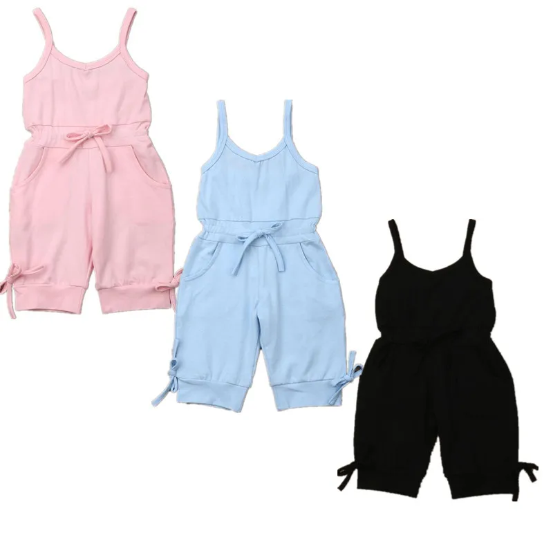Детский однотонный комбинезон без рукавов, для маленьких девочек