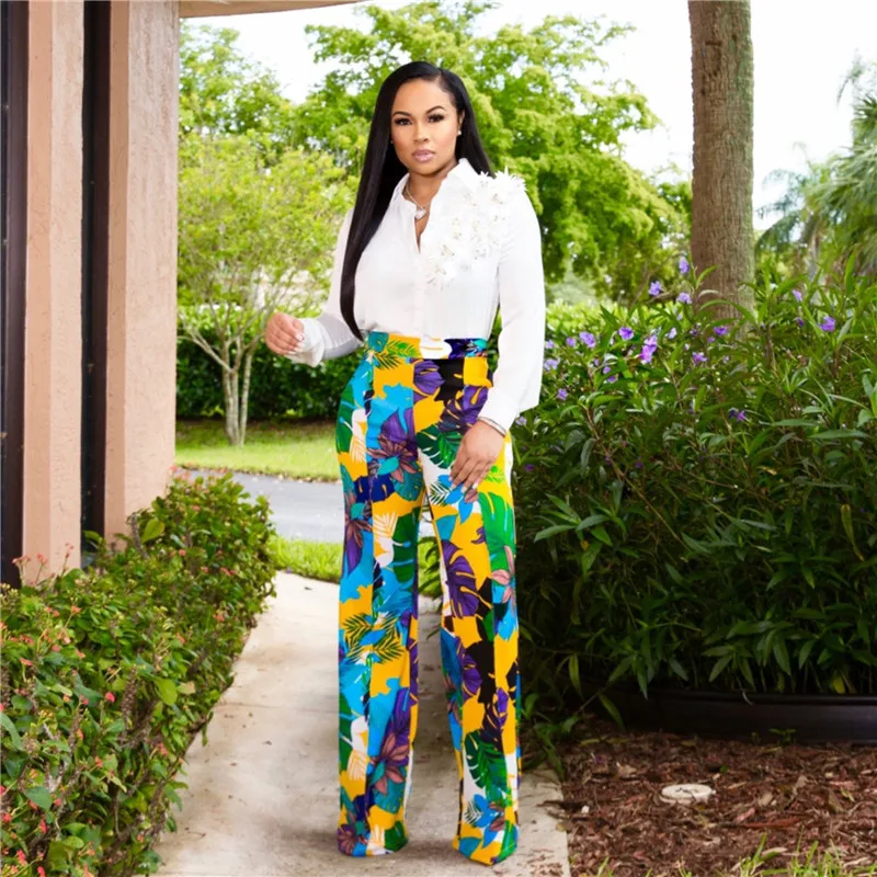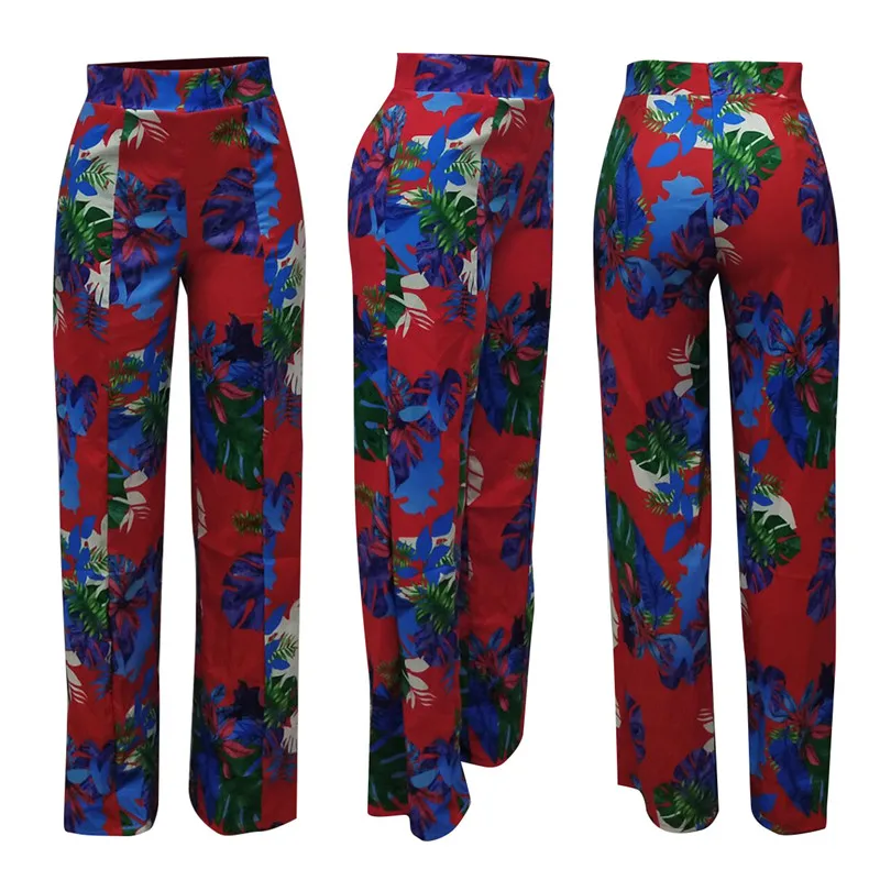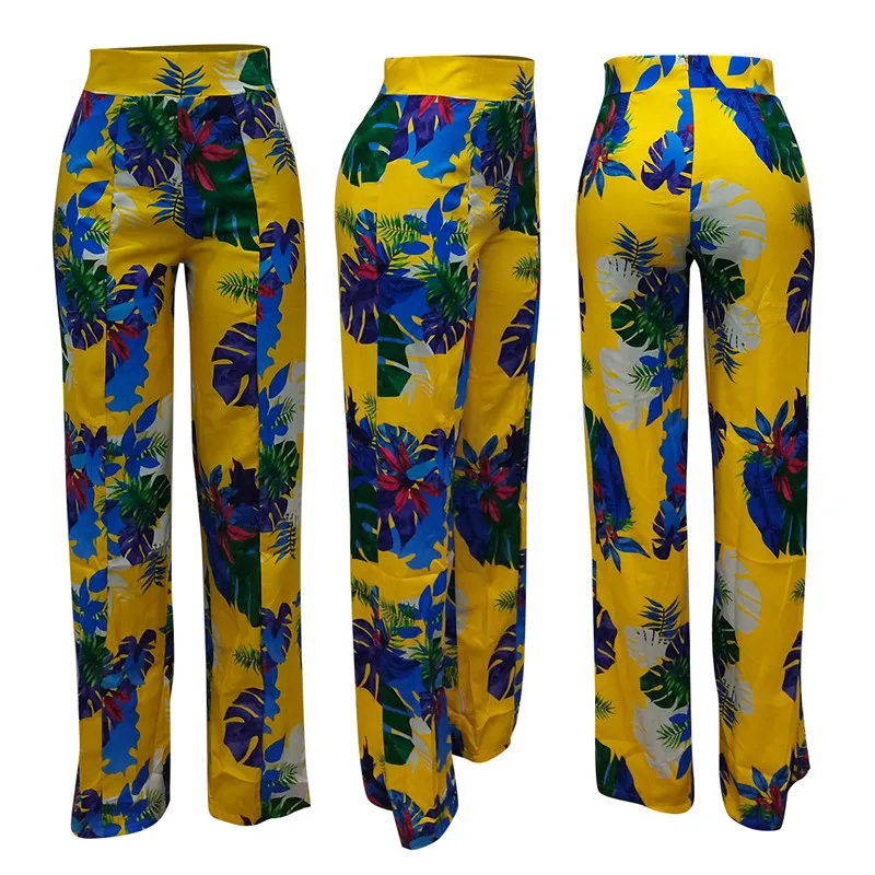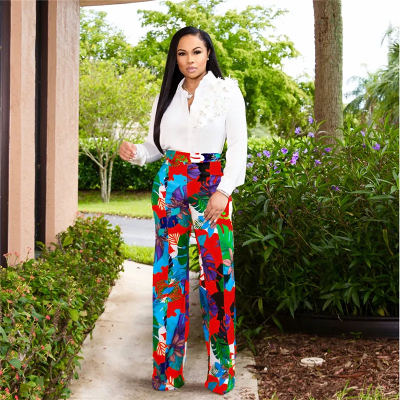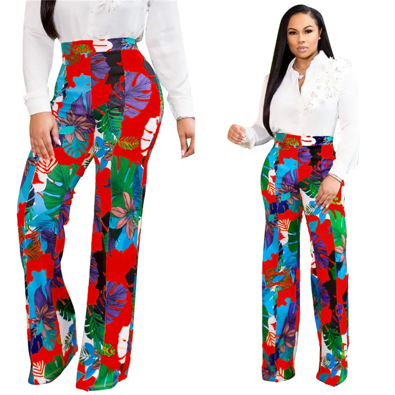 Брюки женские с завышенной талией и широкими штанинами, повседневные длинные штаны, офисные пляжные уличные штаны, эластичные свободные брюки с цветочным принтом, на лето
