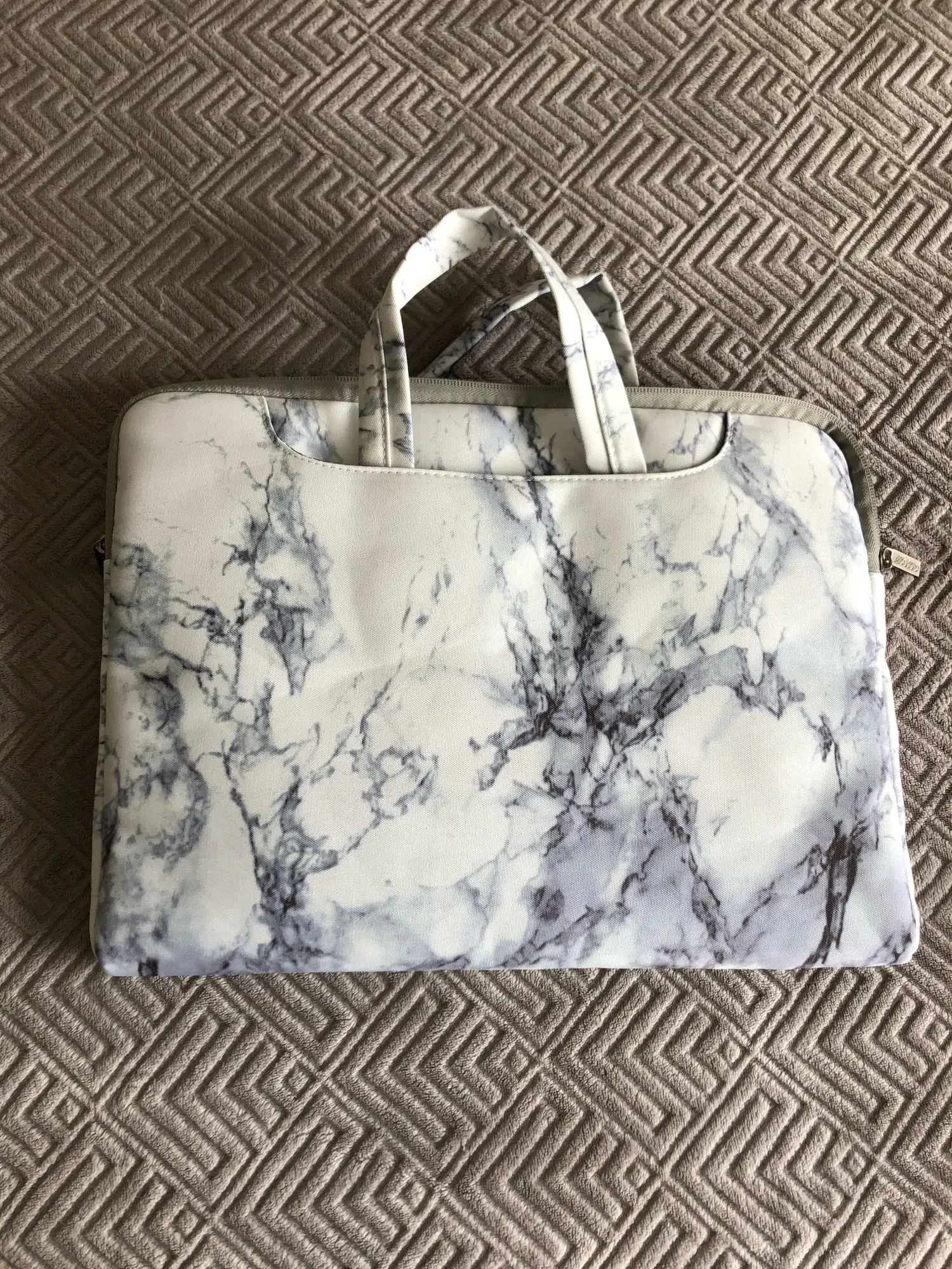 Выглядит не так хорошо, как на картинке. Но все равно нормально. 14 дюймов немного великоват. Я мог бы заказать меньшую версию для моего 14-дюймового ноутбука. Обычно выглядит хорошо. :) Много места для других вещей.