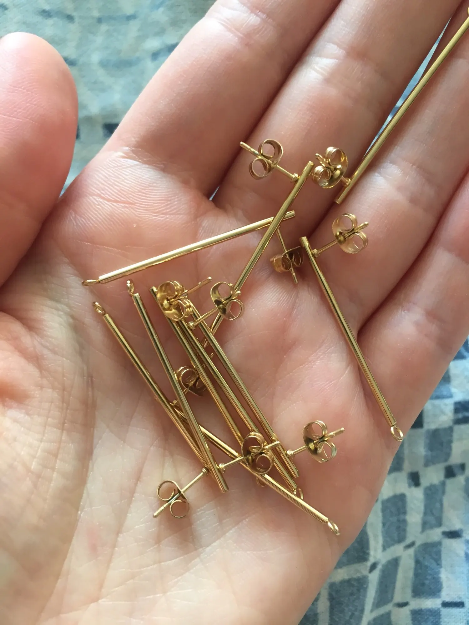 18k золото серьги фурнитура из нержавеющей стали длинный стержень Соединитель с открытым кольцом для изготовления в Корейском стиле