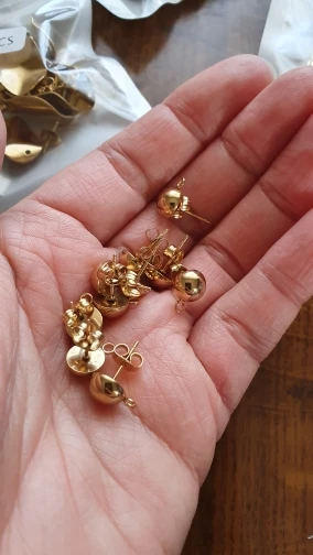 картинке не соответствуют - слишком желтые. Выглядят так, как будто из консервной банки выдавили форму. С обратной стороны некоторые серьги не гладкие - царапаются. Вобщем выглядят очень дешево(((