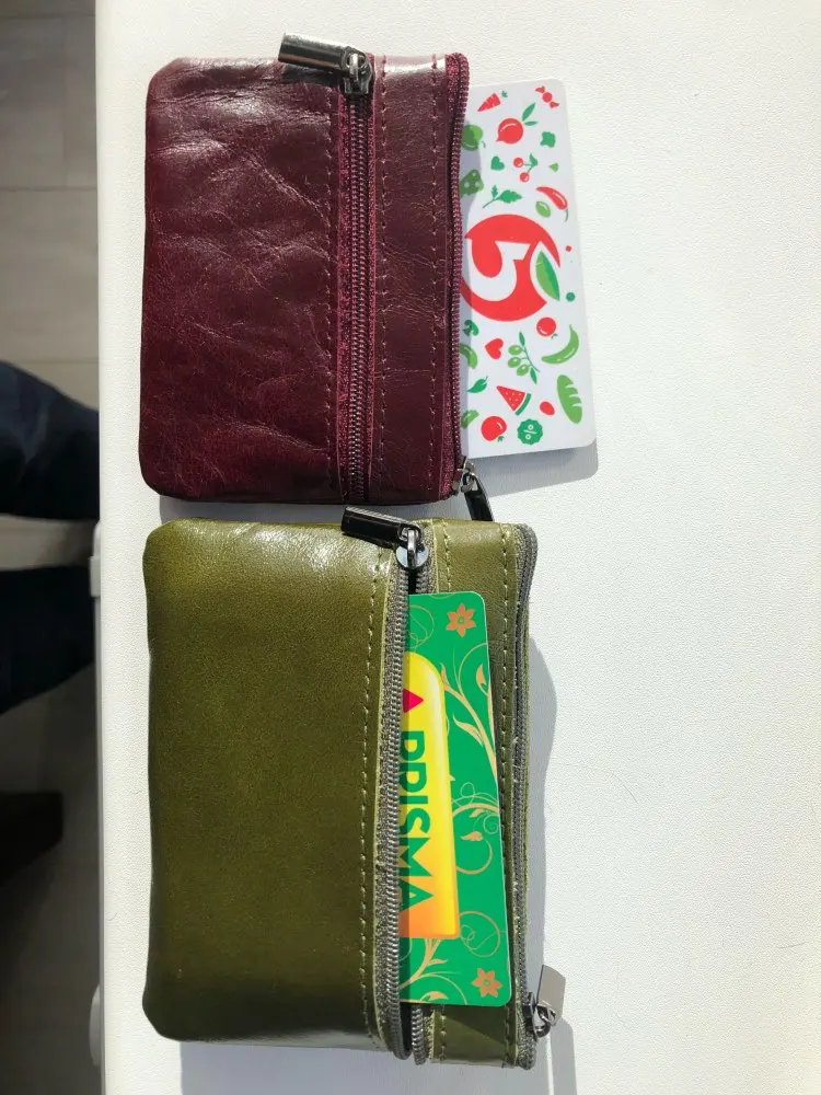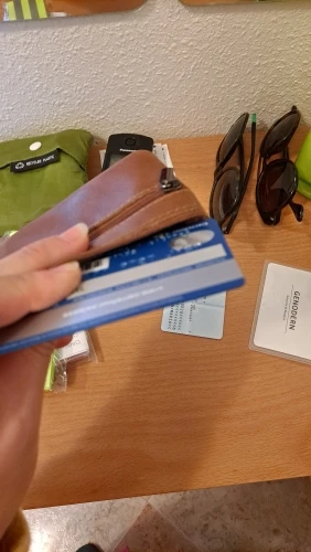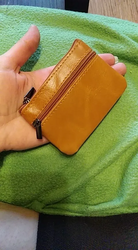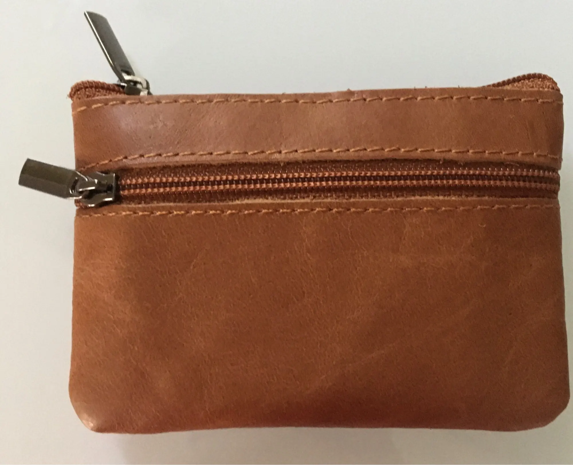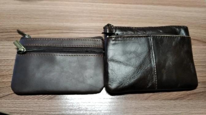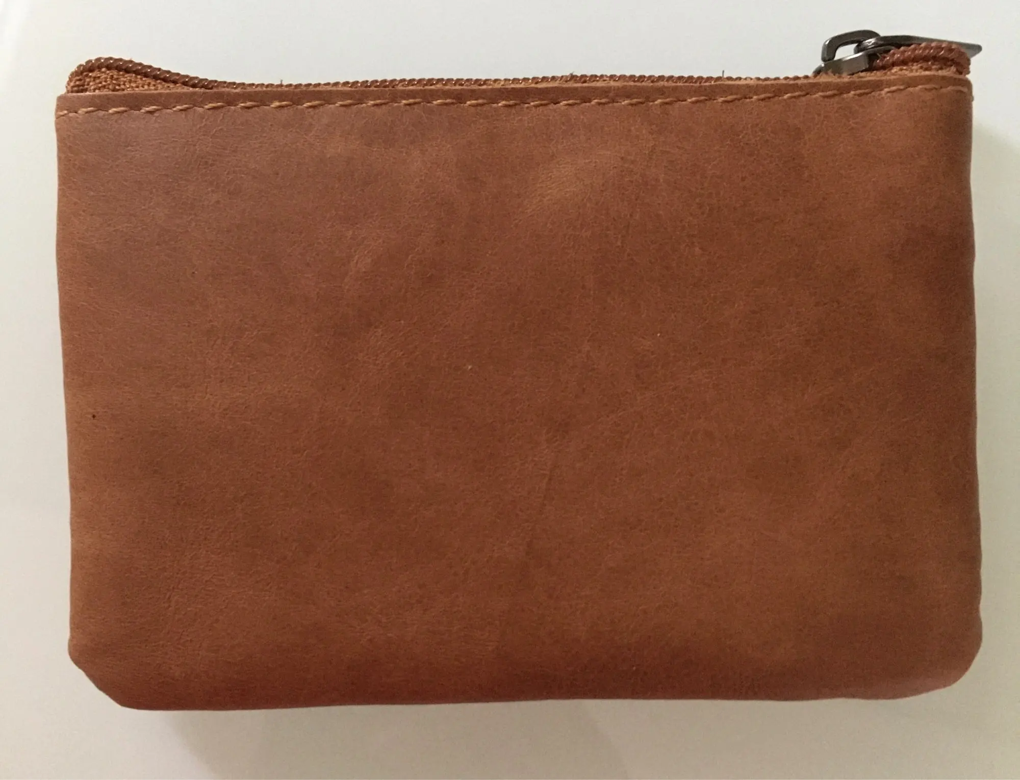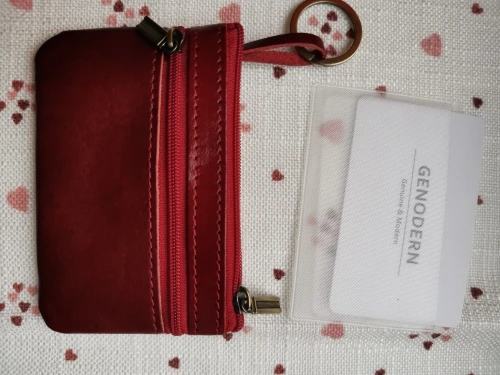 Precioso y cuero auténtico. Tres cremalleras muy útiles, y caben las tarjetas perfectamente