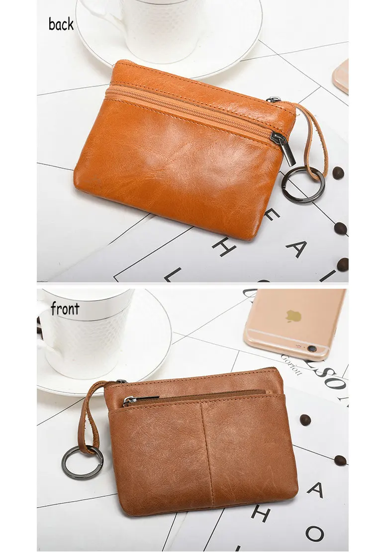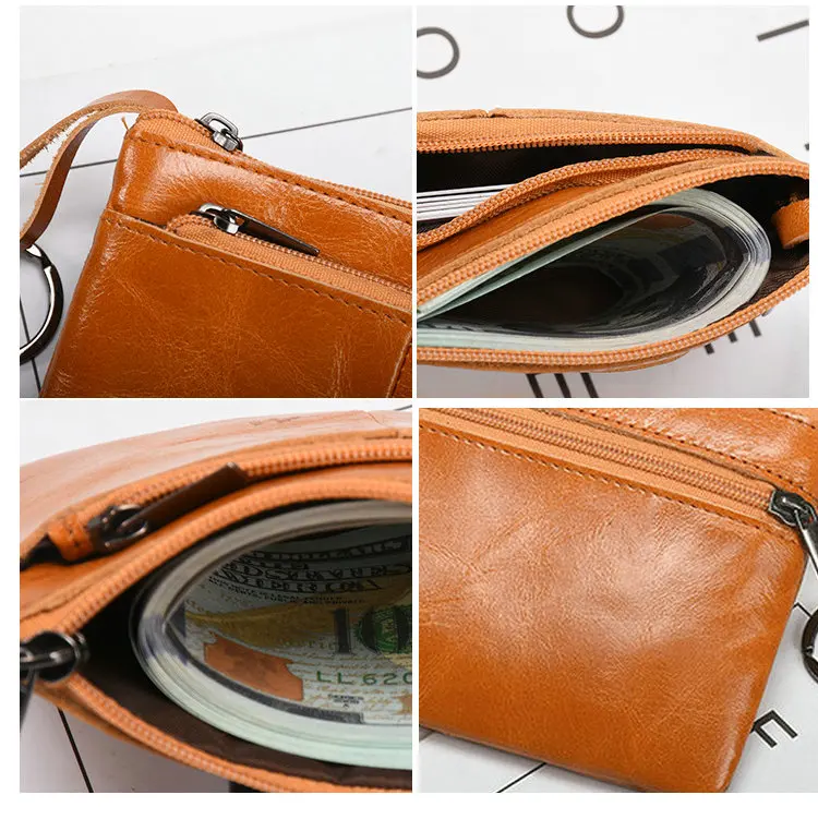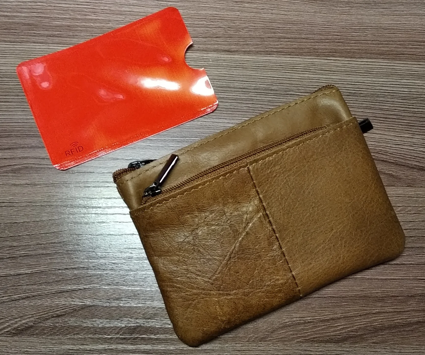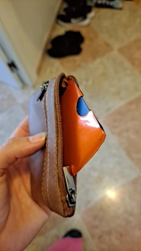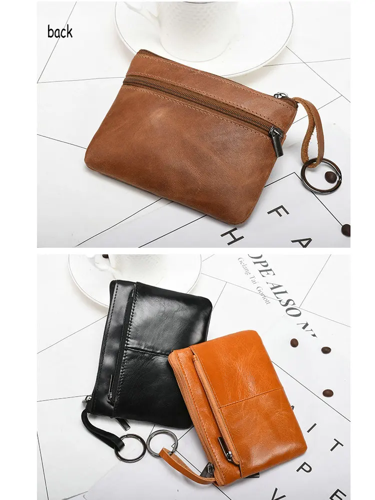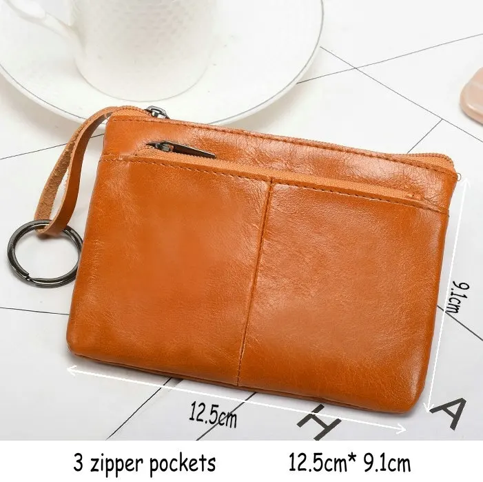 Precioso y cuero auténtico. Tres cremalleras muy útiles, y caben las tarjetas perfectamente