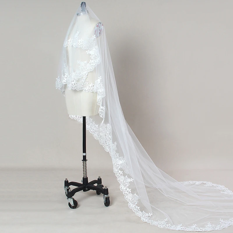 Фата, свадьба 3 м двухслойная кружевная кромка белая слоновая кость Соборная вуаль с длинным лицом покрытая свадебная вуаль с расческой Veu de Noiva