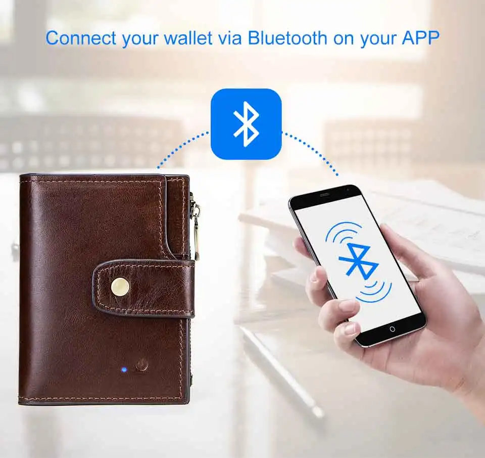 Кошелек мужской KAVIS rfid, из натуральной кожи, с сигнализацией, GPS-картой, Bluetooth, черный