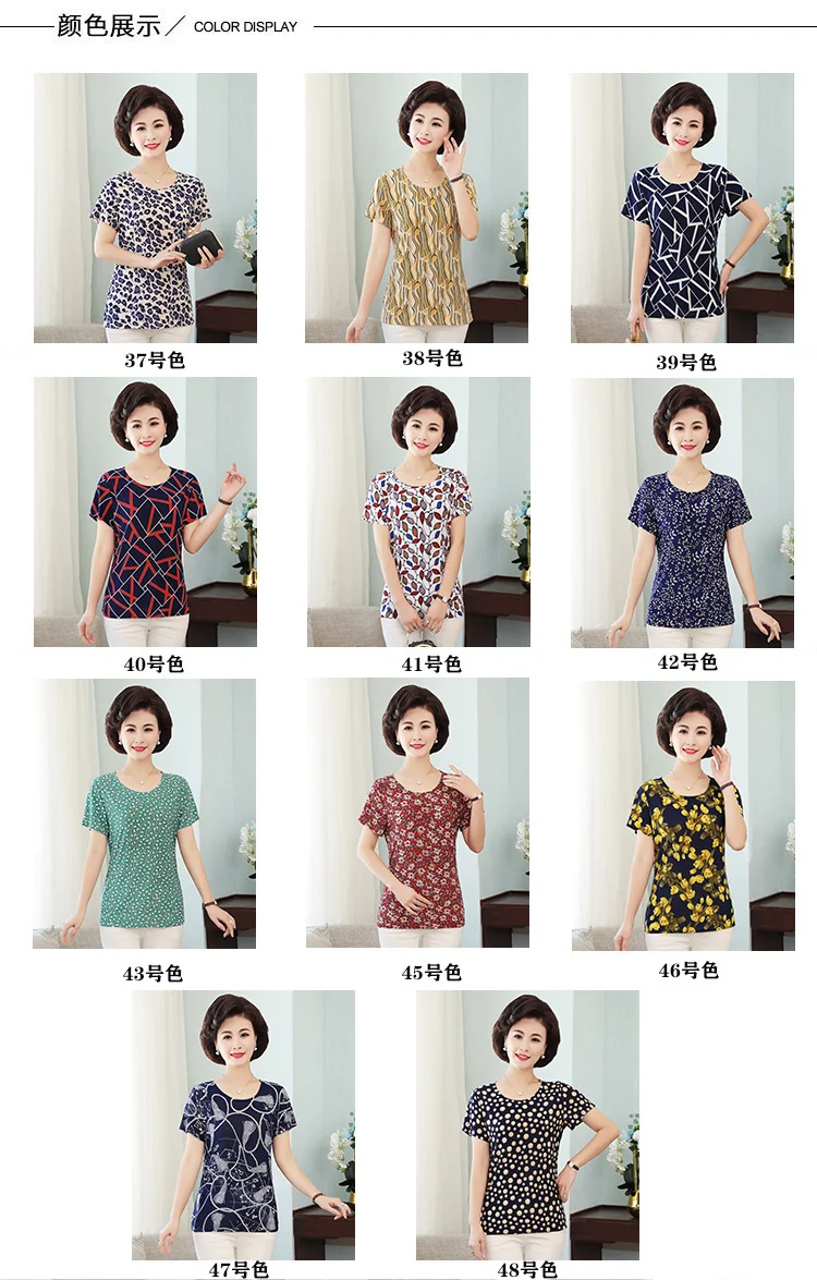 Женская летняя футболка из молочного шелка, короткая футболка с принтом, одежда для мам среднего возраста, 2020, размера плюс, женские топы, L-4XL