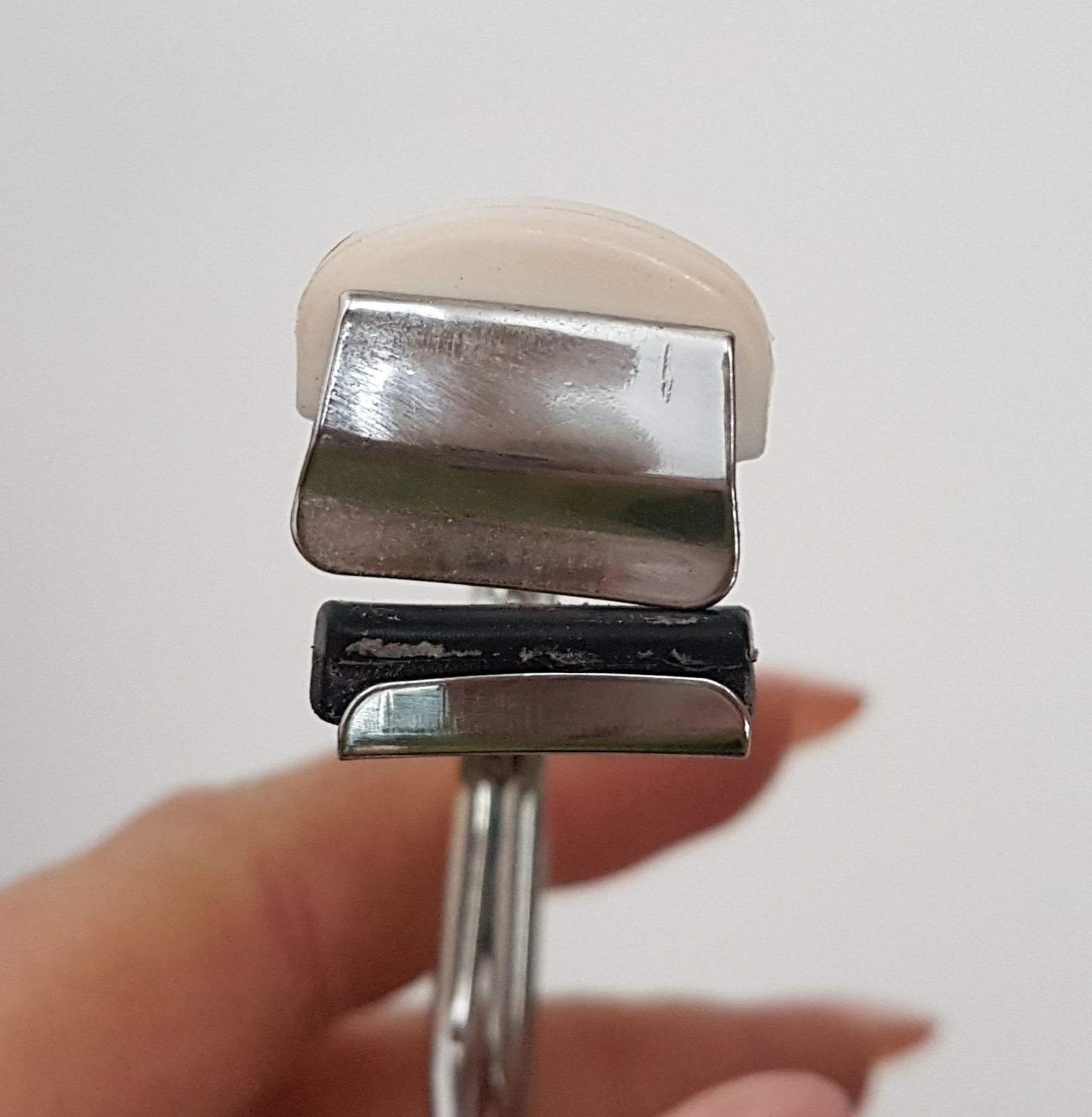 Плохое бигуди для ресниц, металлическая часть неровная и изогнутая. После завивки ресниц zaciсьniêciu металл не прикасайтесь к резиновым частям.