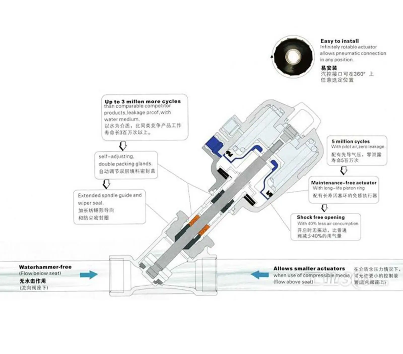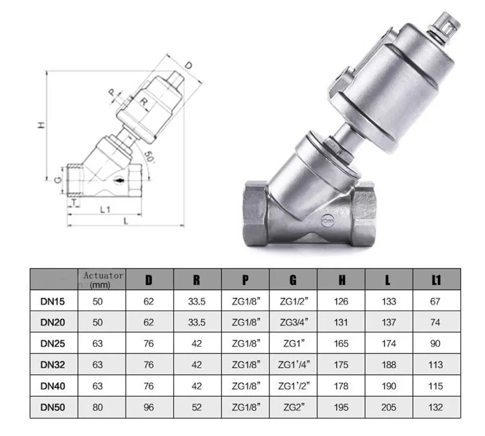 12 "34" 1 "BSPT Женский 304 нержавеющий приводной Пневматический Угол сиденья паровой клапан с новой-типа Нержавеющей Головкой
