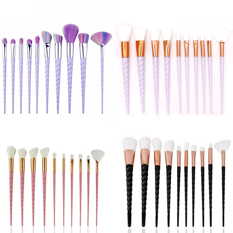 10 шт набор кисточек для макияжа с ручкой в форме рога единорога пудра смешивания теней для век макияж кисти белый черный косметический Красота Make Up инструменты d