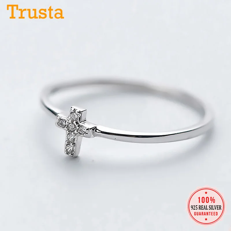 Trustdavis Оригинальное кольцо из стерлингового серебра 925 пробы очаровательный крест блестящее CZ коктейльное кольцо пожеланий подарок для женщин девушек женские ювелирные изделия для вечерние DA1561
