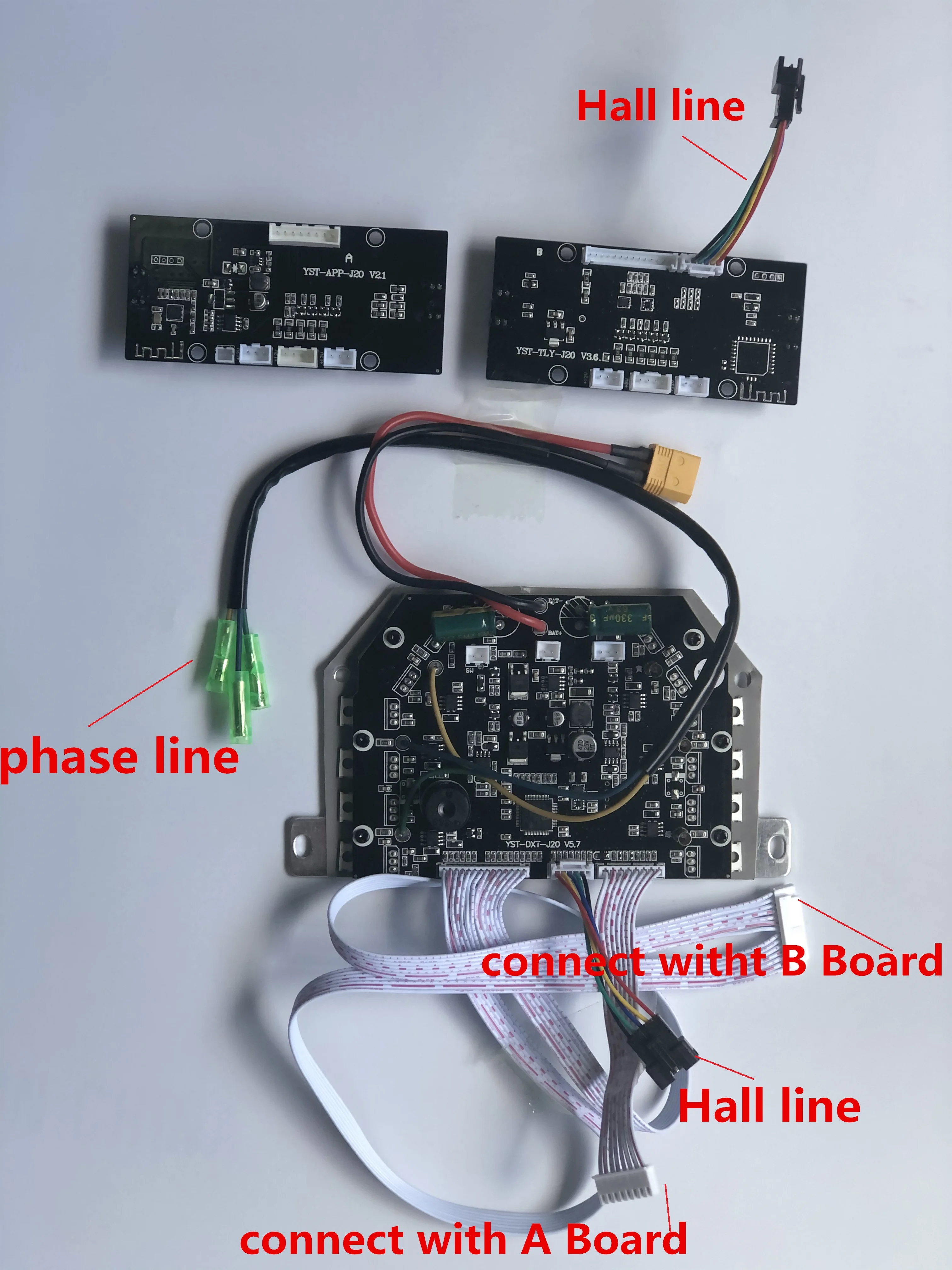 Левая сторона 2 pin порт для линии коммутатора; Правая сторона 4 pin порт для зарядки линии; Средний 3 pin для модуля bluetooth.