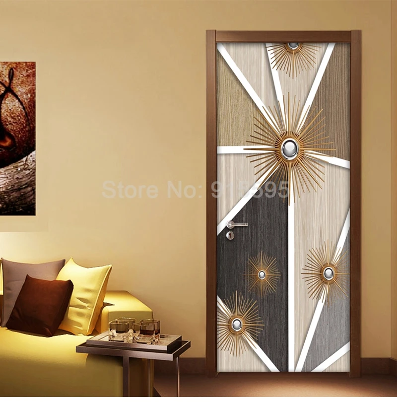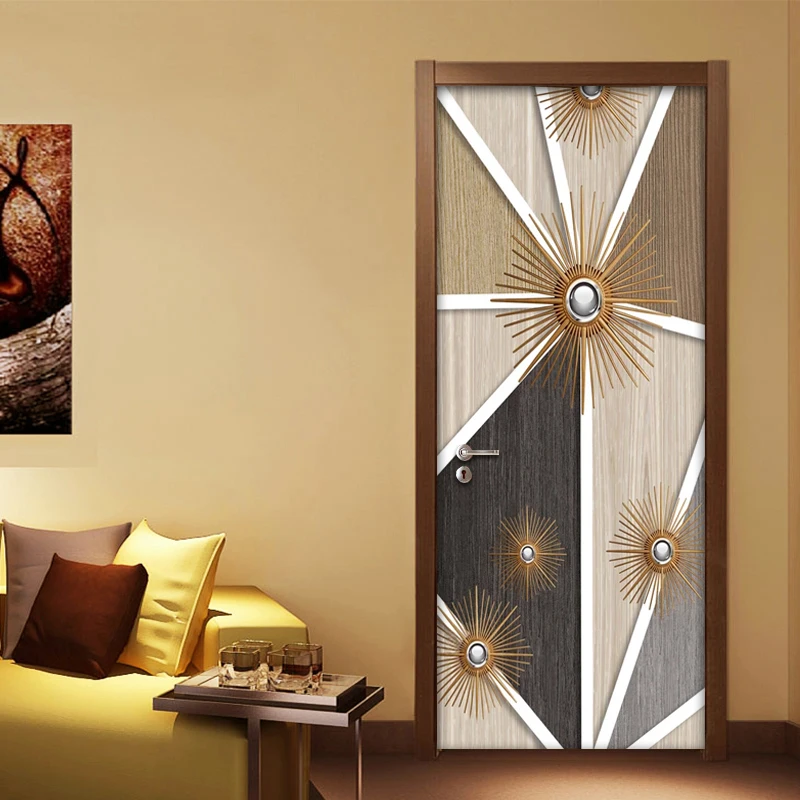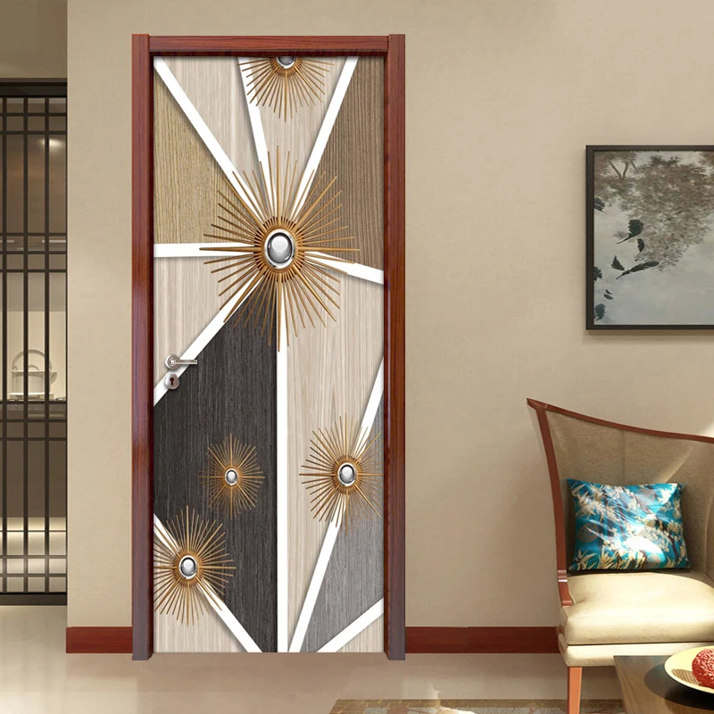 Абстрактные современные геометрические наклейки 3D для двери, для гостиной, спальни, ПВХ Самоклеящиеся обои, домашний декор, водонепроницаемые наклейки для двери