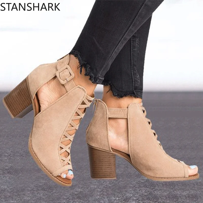 Женские сандалии с открытым носком, сандалии на высоком каблуке в римском стиле, замшевые туфли, Новинка лета 2019