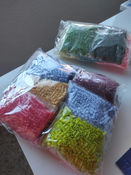 Очень довольна! дочке 4 с половиной года-отлично собирает. А я потом через бумагу для выпекания провожу утюгом и вуаля. Оформить потом можно подарочки бабушкам, как магнитики например или брелочки. Заказала всё у этого продавца сразу. Брала смешанные цвета 2 пакетика. рекомендую докупить основные ещё цвета такие, как белый, красный, черный, голубой. До Саратова полностью вся посылка шла 3 недели. в 2 раза дешевле чем на Озон.