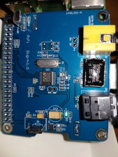 Установите драйвер на HifiBerry DiDi +, и он отлично работает с MoOde, качество звука очень хорошее. Чехол немного неудобно крепится, но со временем он хорошо сработает. Единственный элемент заключается в том, что отверстие в чехле не подходит для большего количества фитингов из лучших оптических кабелей, но все в очень хорошей плате. Я доволен этим!