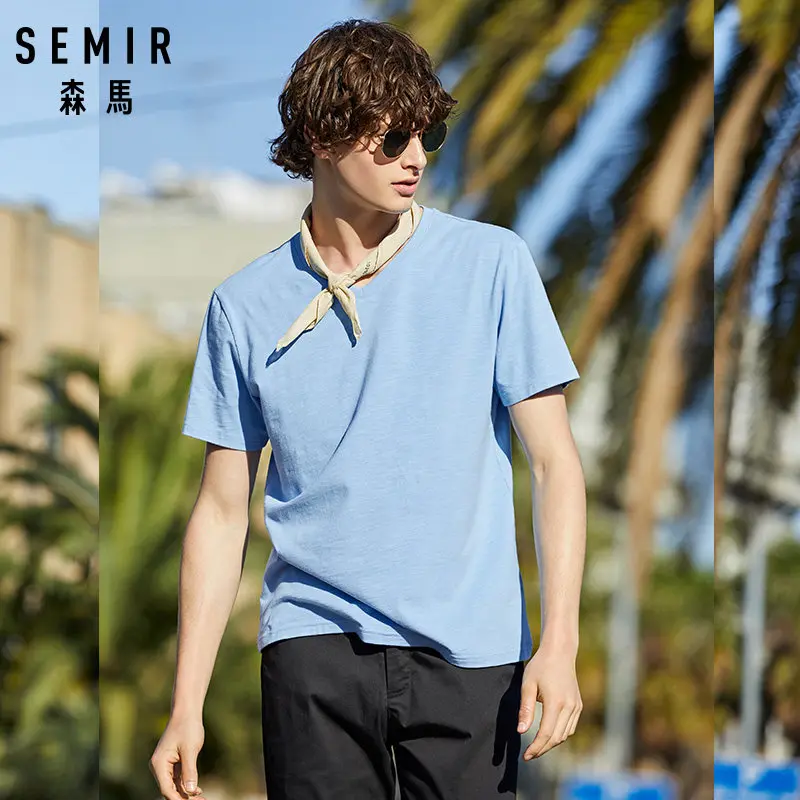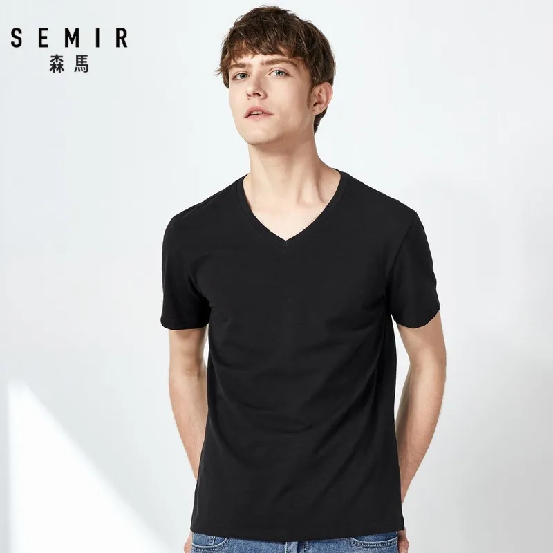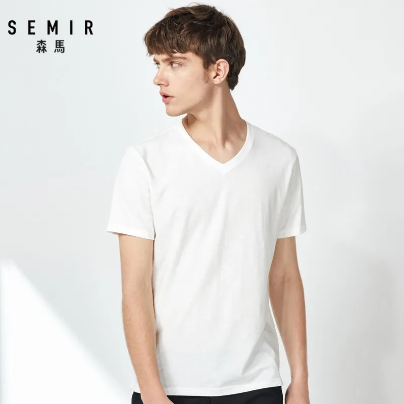 SEMIR 2020 новые летние футболки с короткими рукавами для мужчин с v-вырезом на шее твердое сужающаяся к талии футболка мужские футболки удобная одежда