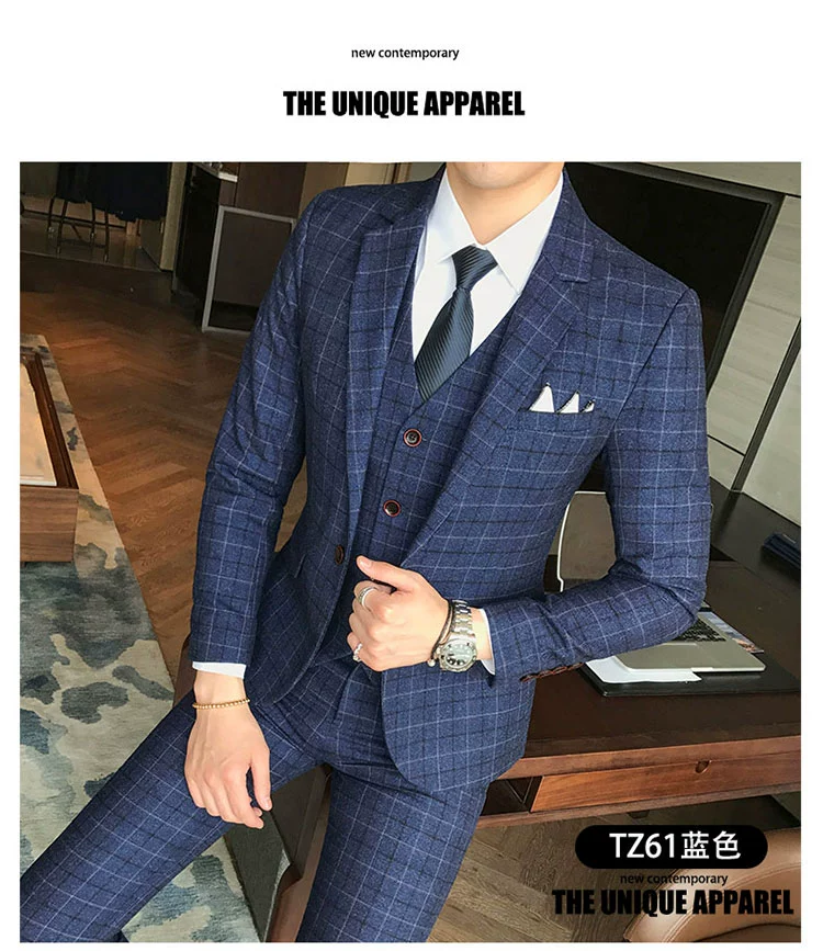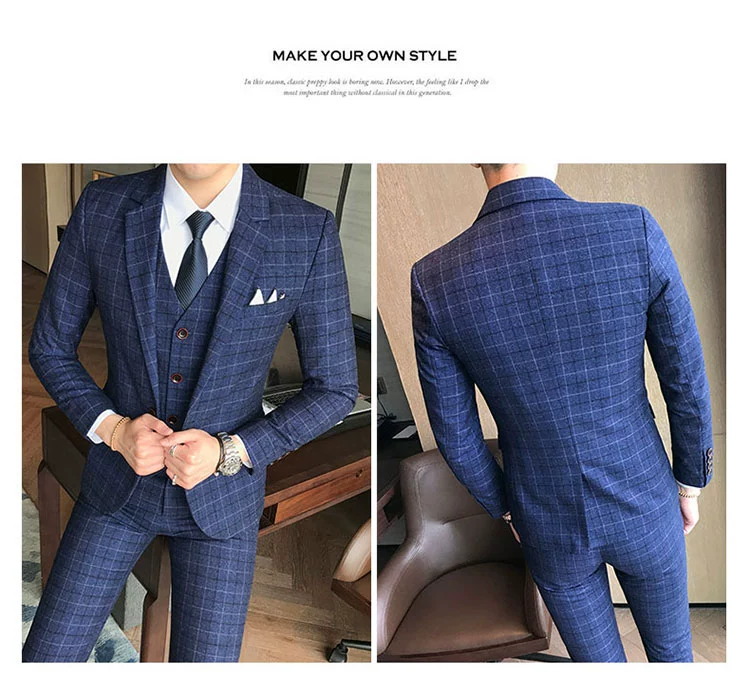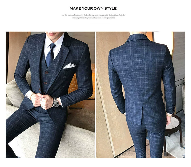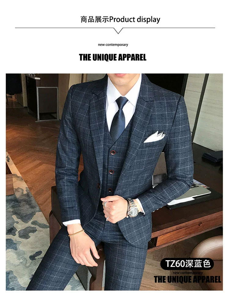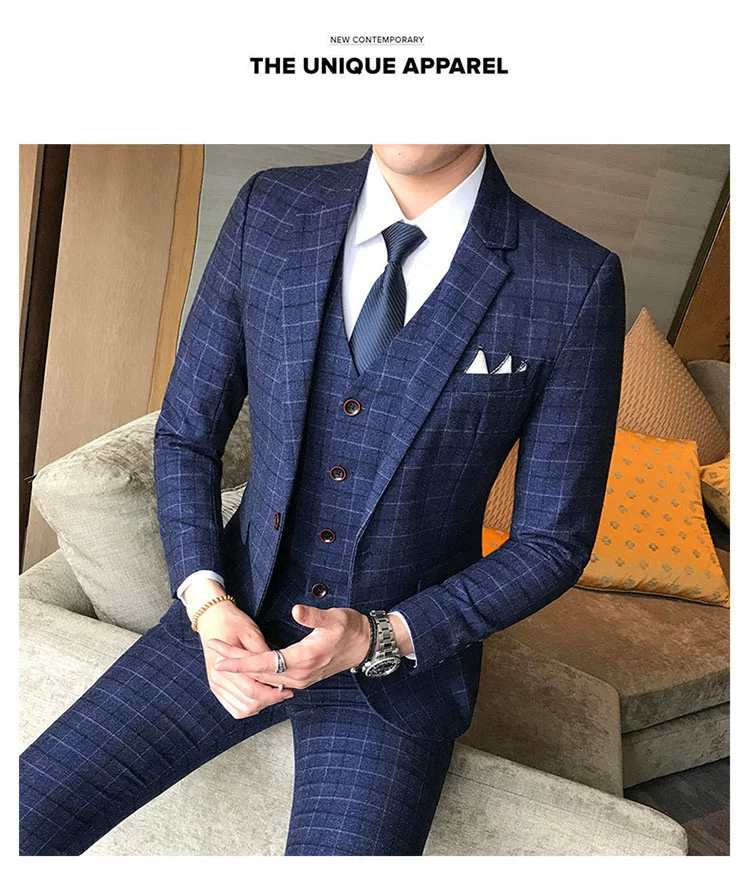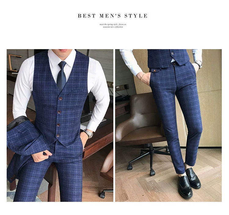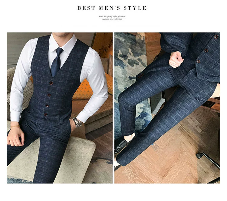 Роскошный мужской костюм жилет в клетку, брюки 2019, Мужская официальная одежда, свадебное платье, большой размер, повседневный деловой мужской костюм, жилет, брюки