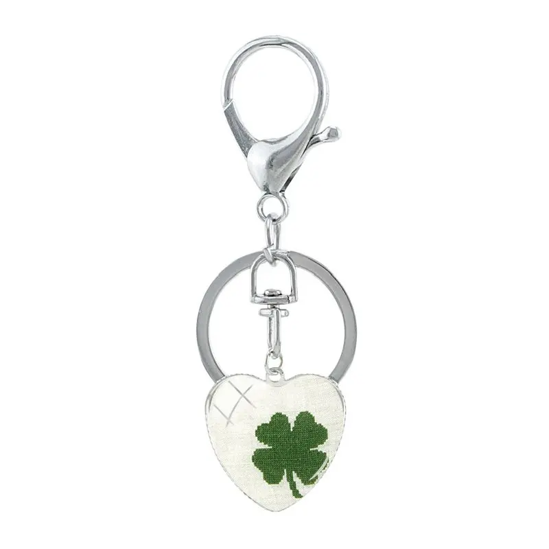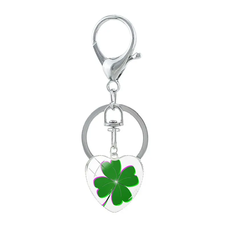 JWEIJIAO Высококачественный зеленый брелок с листком, модный стеклянный кабошон, четырехлистный клевер, изображение, сердце, брелоки, брелок, ювелирные изделия QF352