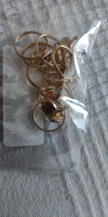 Доставка в Испанию, галичину занимает 12 дней. Дизайн колец, очень похожий на маленьких, может быть немного увеличен, это в основном размер d для девочек. Немного редкая Презентация по сравнению с фотографией, так как она поставляется не с коробкой с сердцем, а в полиэтиленовом пакете, где 10 колец внутри, я оставляю фотографию только некоторых. Они в золотом тоне, которые могут быть красивы для девочки.
