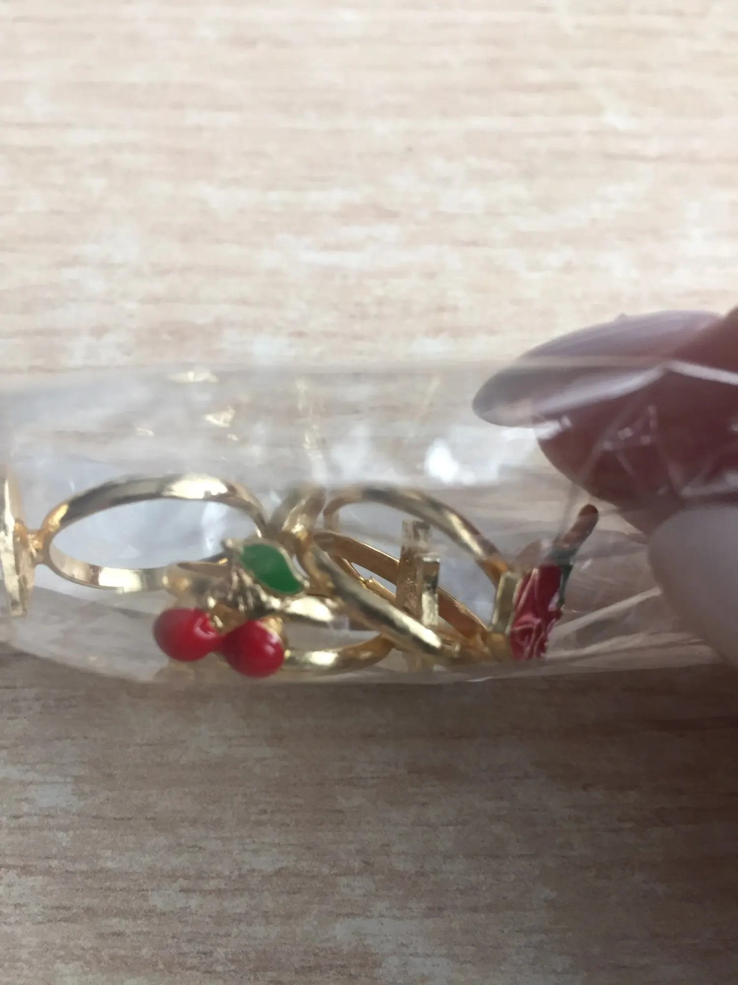 колечки пришли целые попались две одинаковые вишенки, не такие как на фото, более простой рисунок, но ребенок доволен, это самое главное.