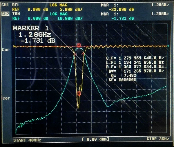 Центральная частота пропуск частиц: 2,0-3,0 дБ @ 1280 МГц