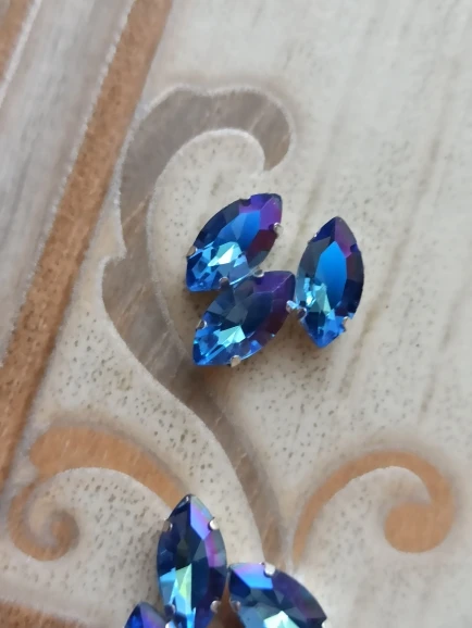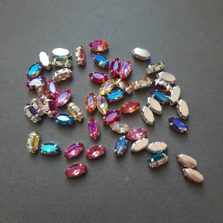 Конский глаз AB цвета стеклянные стразы для пришивания с серебряной затылкой плоские кристаллы AB Navette пришивные стразы s для платья B1212