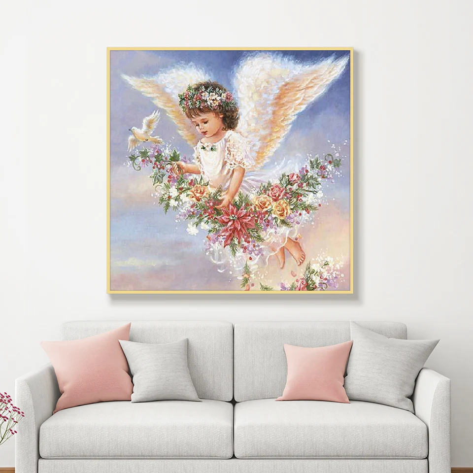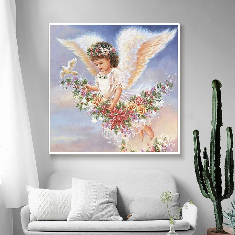 Полный Круглый дрель 5D DIY алмазная живопись "две маленькие Angels...