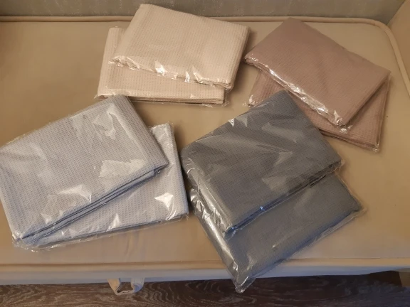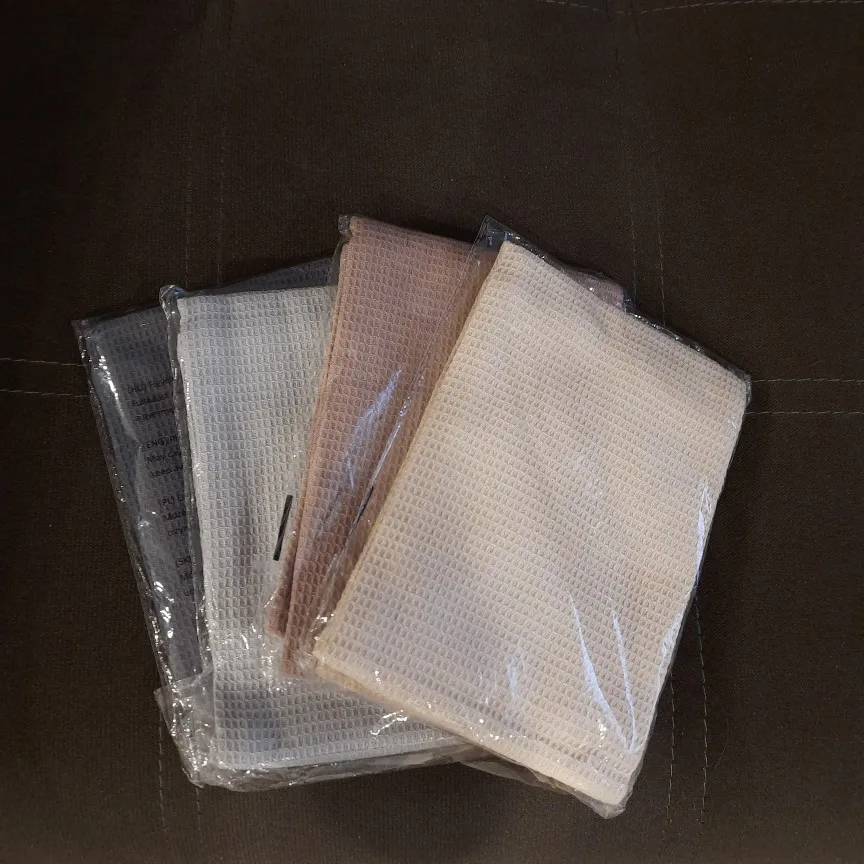 Обычные вафельные полотенца, всё как на картинке , за исключением того что пришли полотенца одного цвета , а на фото 4 разных цвета!